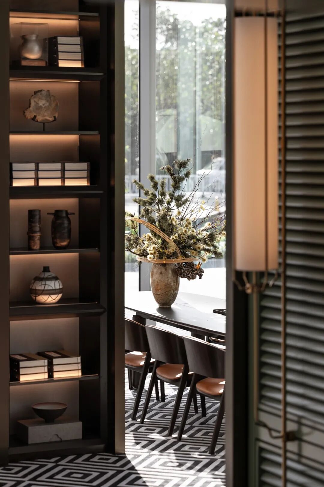 本案恰好处于广佛交界处,这里交融着最浓郁的岭南人文气息,提醒着设计师溯流追源,从岭南的古建筑中捕捉灵感,于繁华与安宁之间,构筑一处自在的艺术居所。