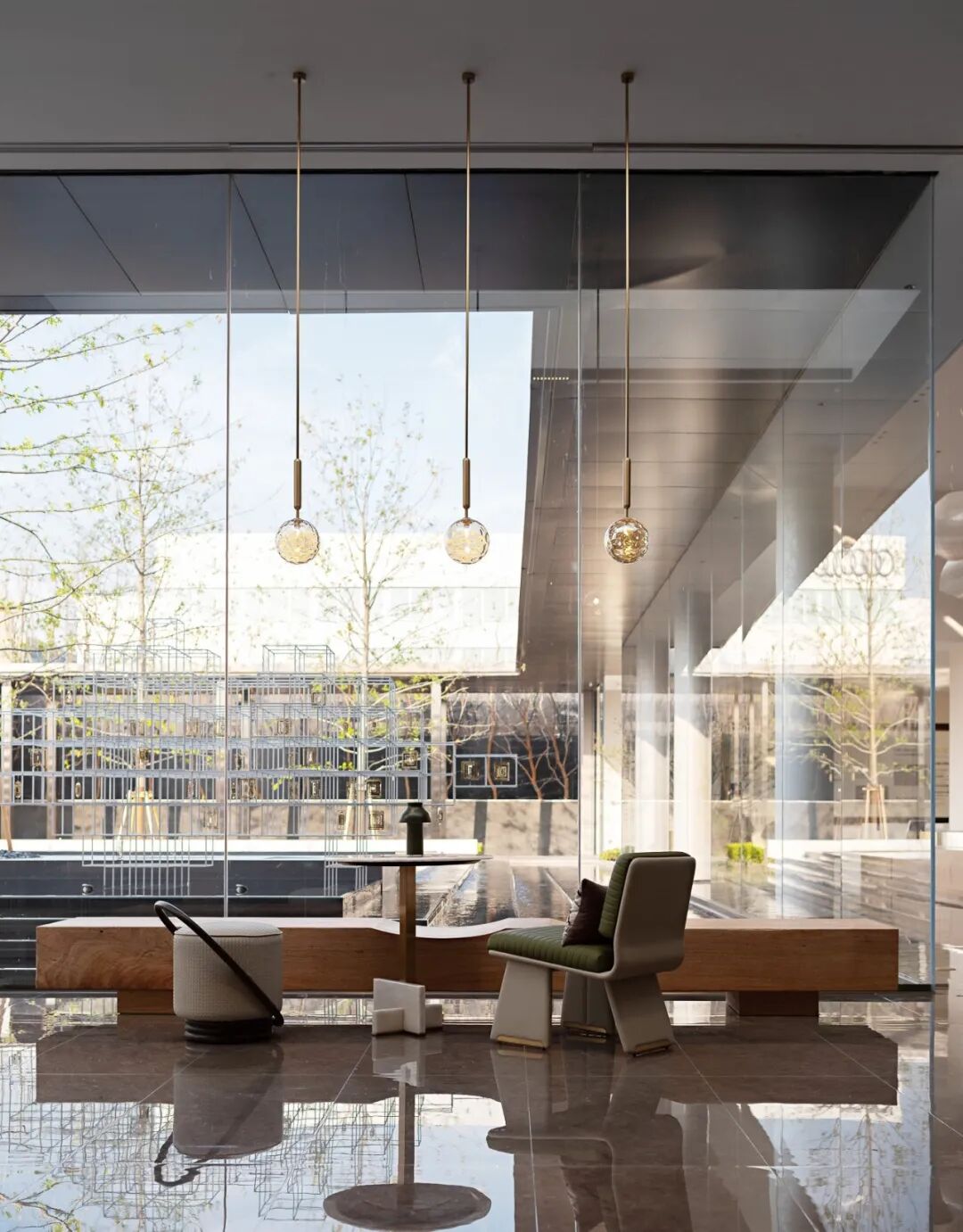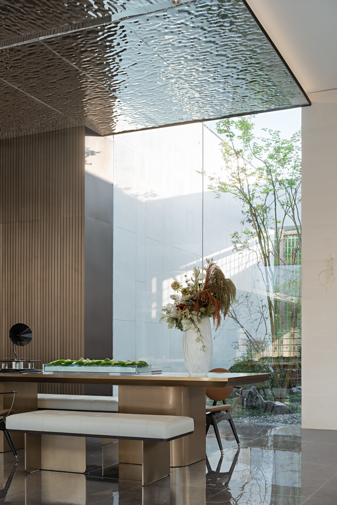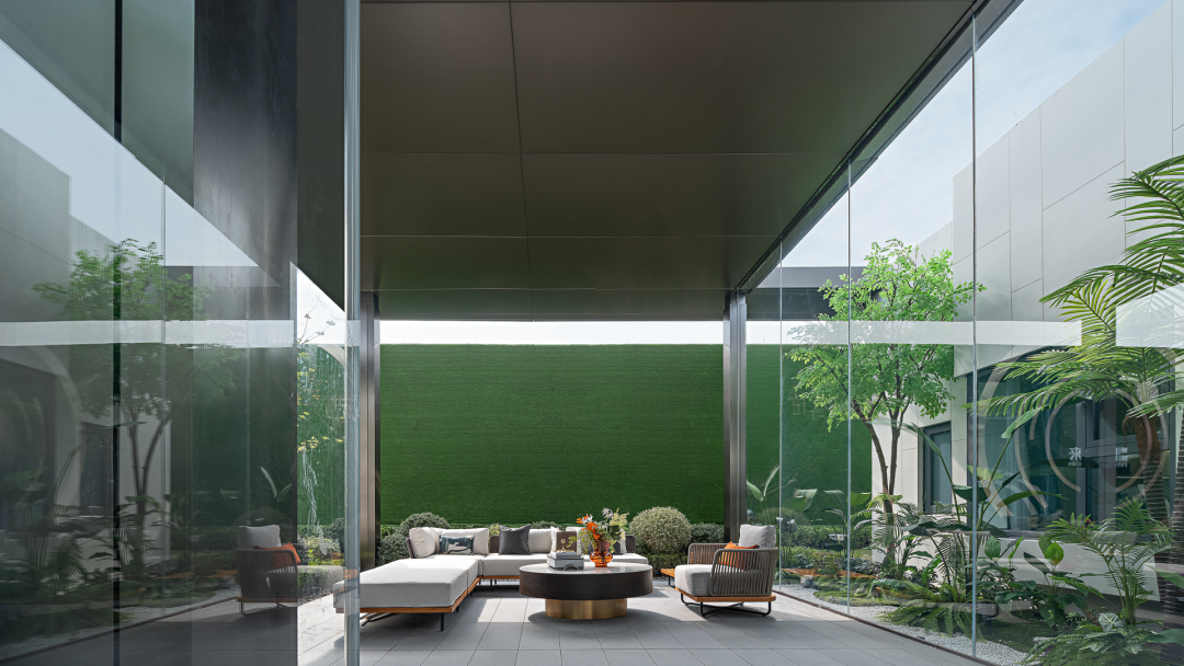 水景一侧,整面可以开合的玻璃门,消除了物理墙体、窗面严格的边界限制,人们在此交换感知。