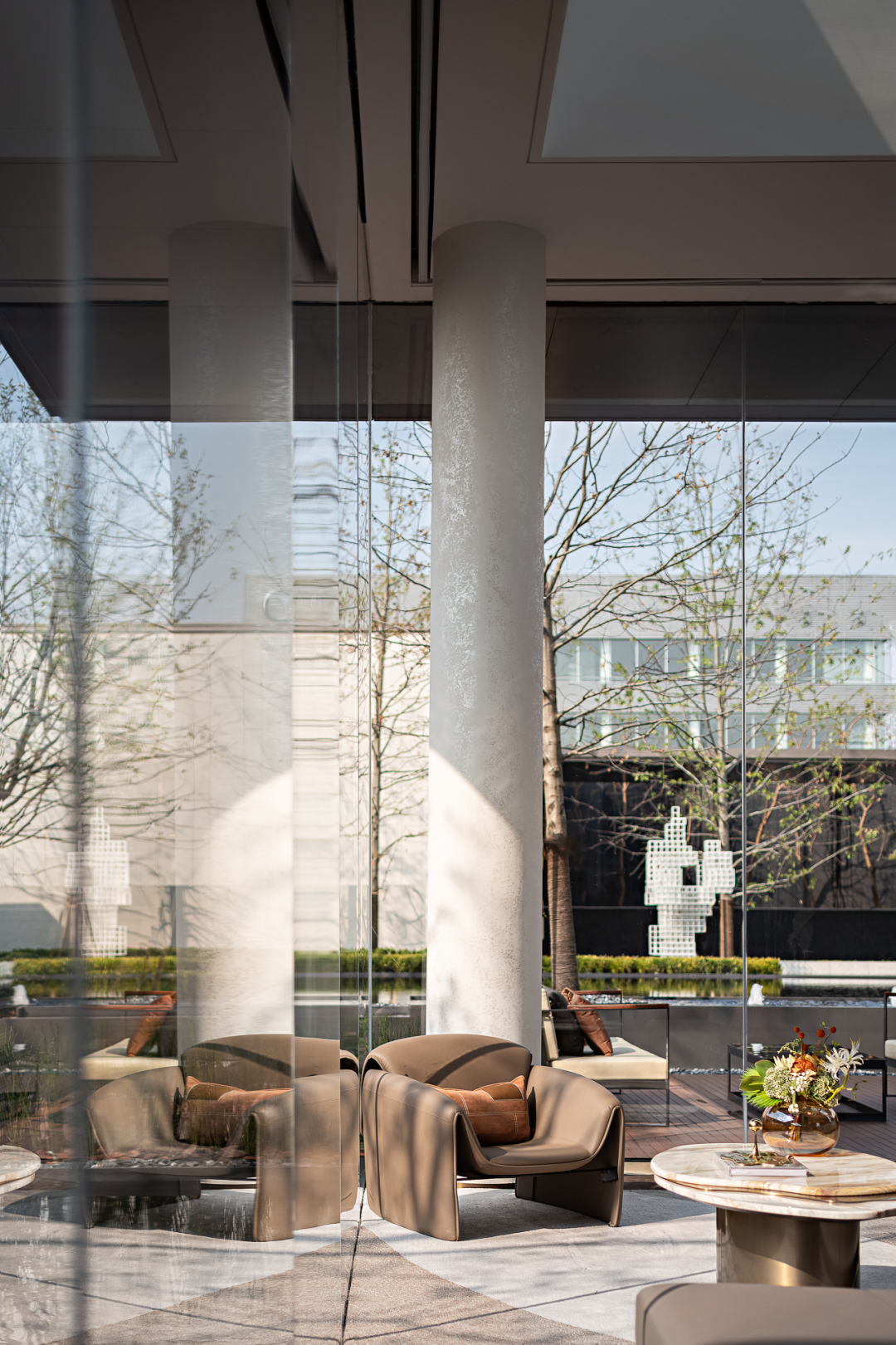 极具设计感的度假酒店式入口,在繁华都市中带来一处谧境,循镜面水景微澜拂拭心情,彷若走进沉浸度假场景,从水中而来,至自然归去。