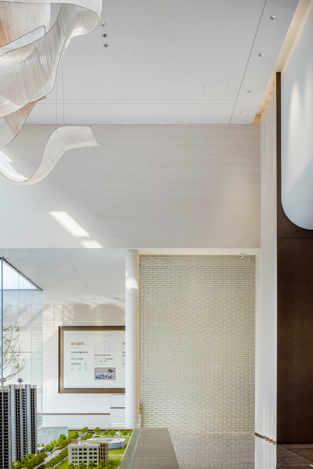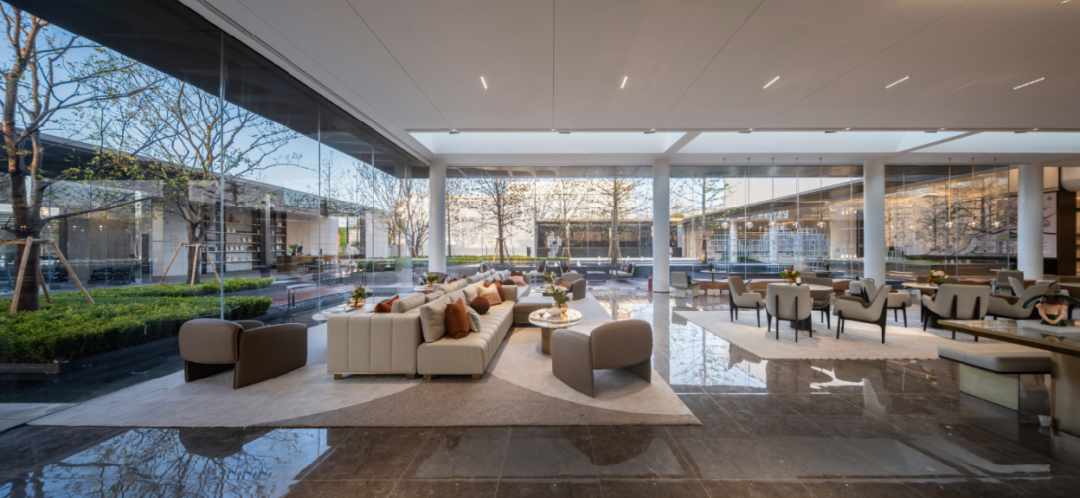 秉持全局设计思考,室内结合景观、建筑的全面咬合,将自然生态的光影,最大融入到室内空间,打破空间界限,建立无界的体验感,将整个大盘作为“营销”的亮点。