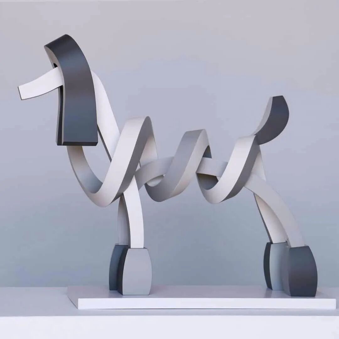 讲到这里,相信很多人都会有疑问,这不就是雕塑吗?和绘画有什么关系,先别着急,看到李尚秀的作品你就会明白。李尚秀用金属制作的长条通过揉、折、拧的方式,把金属长条变成各种各样的动物,这些由金属长条组成的动物形象,就像是一幅用线条勾勒出来的趣味速写,因此他得到空中画家这一称呼。