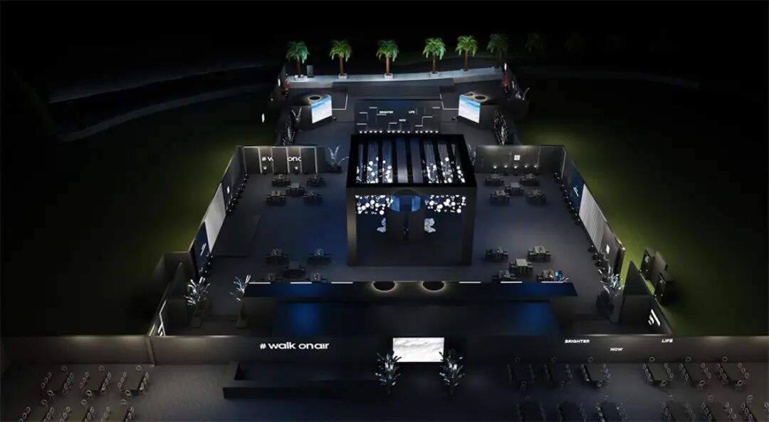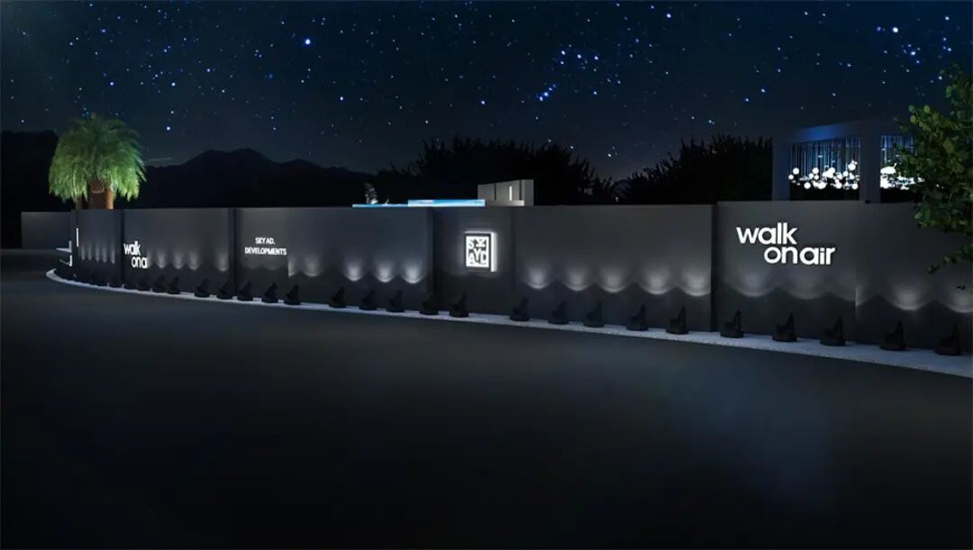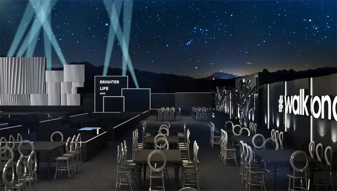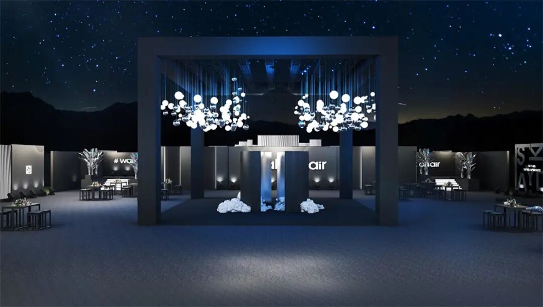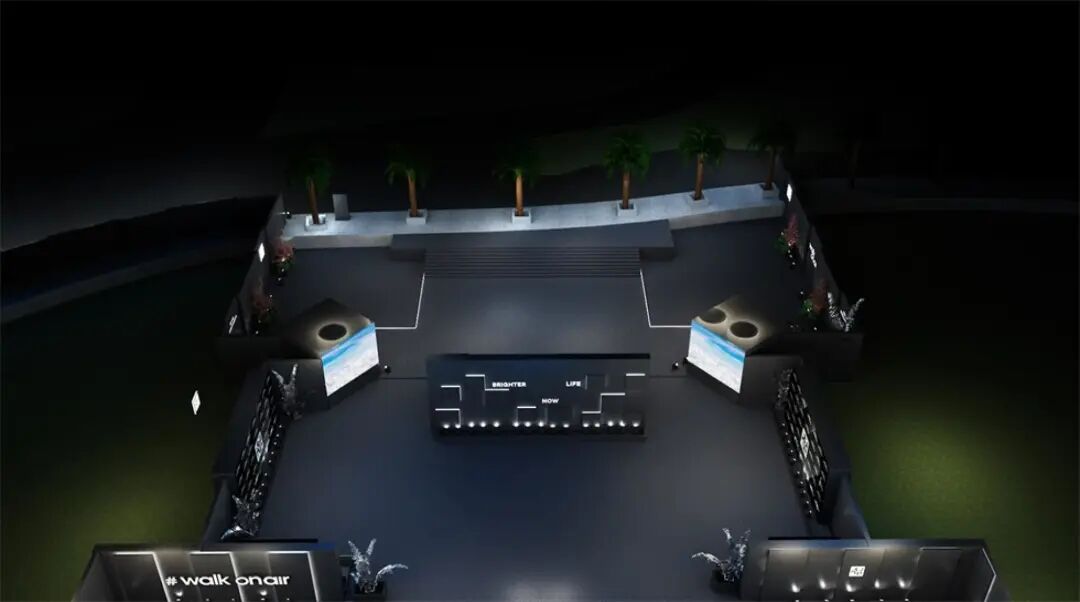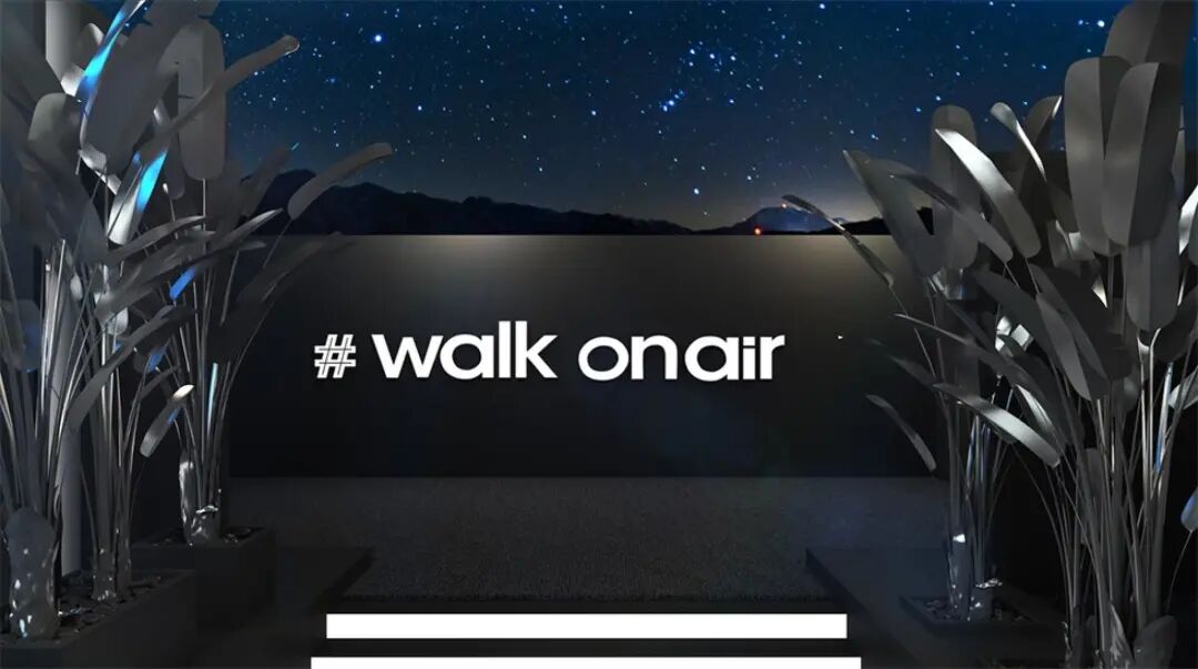 签到区与休息等待区之间的过渡区:LOGO照相墙,“空中漫步”(walk on air)打卡背景。
