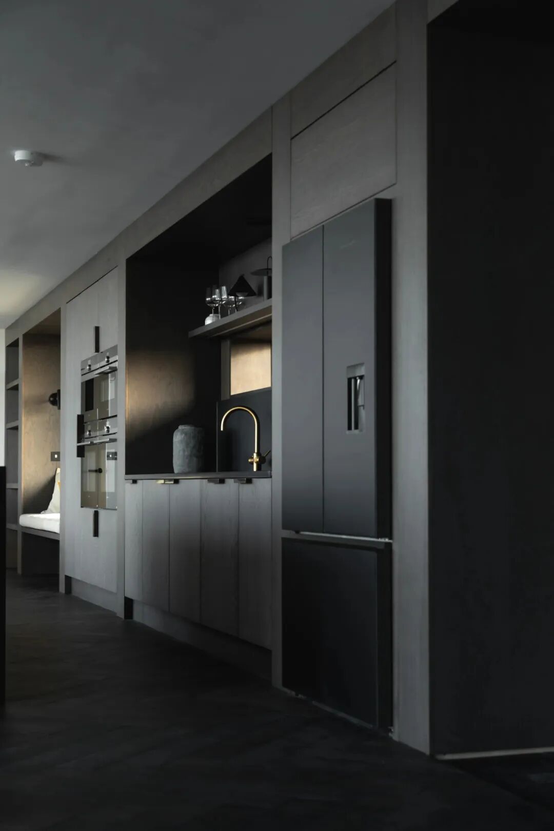 这个想法是拥抱风景和动人的海景。大框架和引人注目的窗户允许与室外进行连续对话,集成的窗户座椅覆盖有纹理亚麻布。舒适的角落创造了宁静的小避难所,允许在不断变化的野生天气中冬眠。将居民与自然节奏和日常生活中的时间流逝重新联系起来。