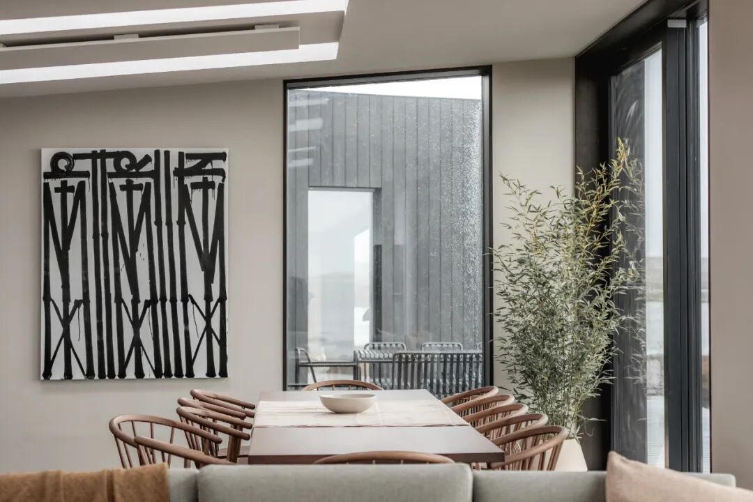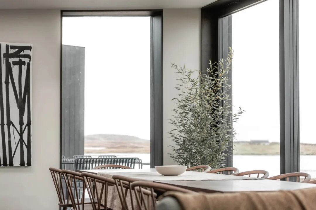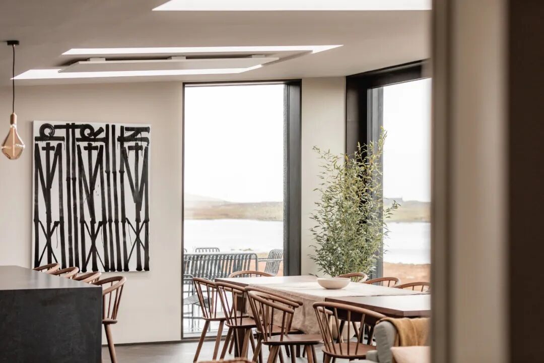 Koto House屋顶的倾斜都与土地的倾斜相一致,构成了一种更具同情心的构图。宽阔的地块让人充分利用美丽的景色、光线和广阔的天空。从现场看,远处的景色穿过海湾,经过瓦利岛,向哈里斯和大西洋边缘望去。这一视图反映了房屋的关键设计元素。