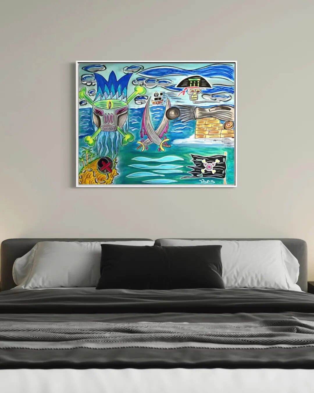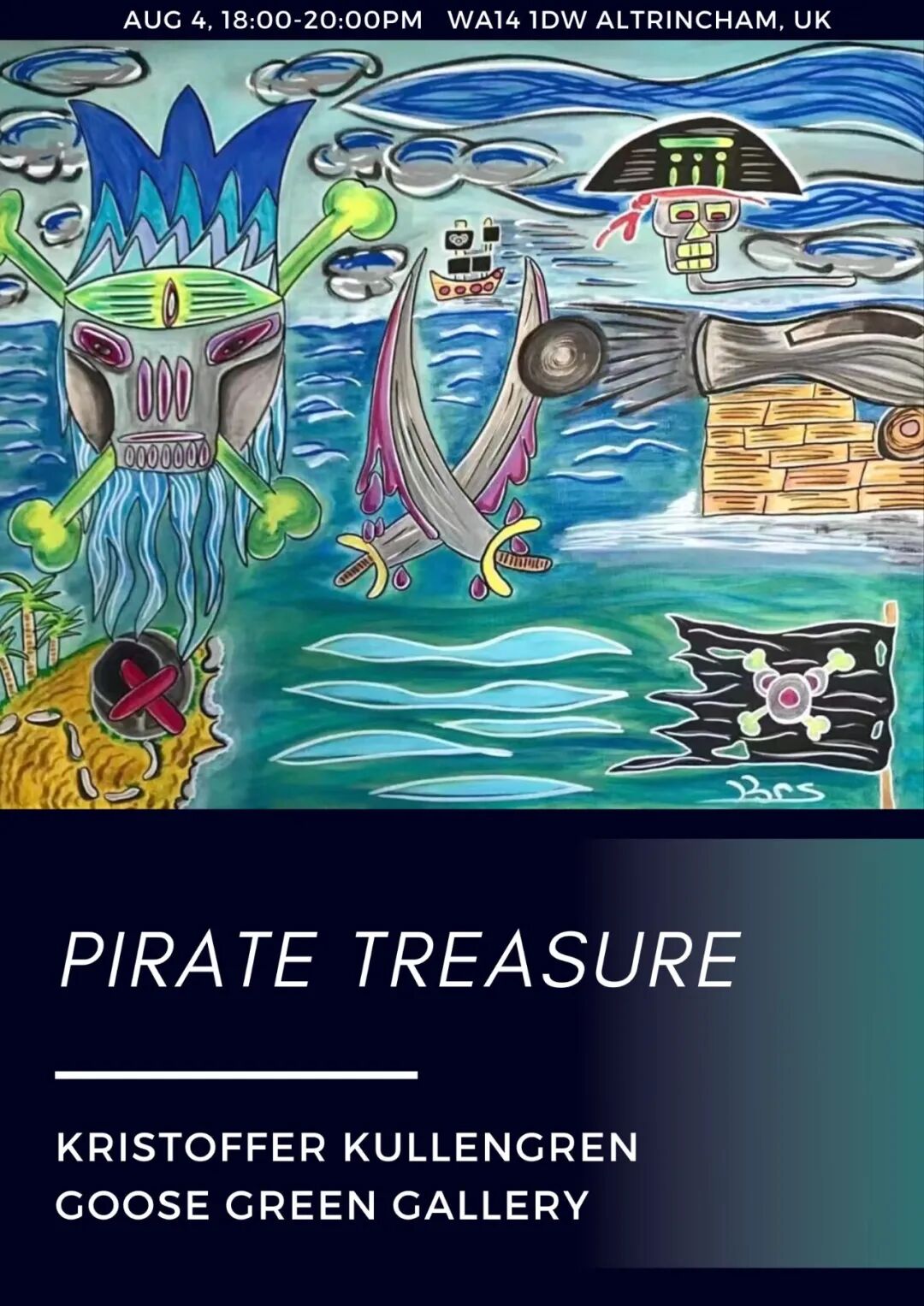 Being one of the very three pirate-related themes of Krs art, Pirate Treasure is a very special artwork where Kero, a character that symbolizes the source of creativity, is escaping a battlefield of pirates after having found treasures.