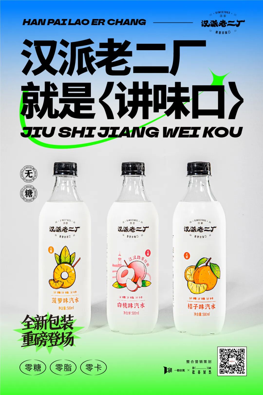 以全新的品牌形象,携手江汉路步行街,带来新口味。同行参与的还有汉口1952玻璃瓶系列。