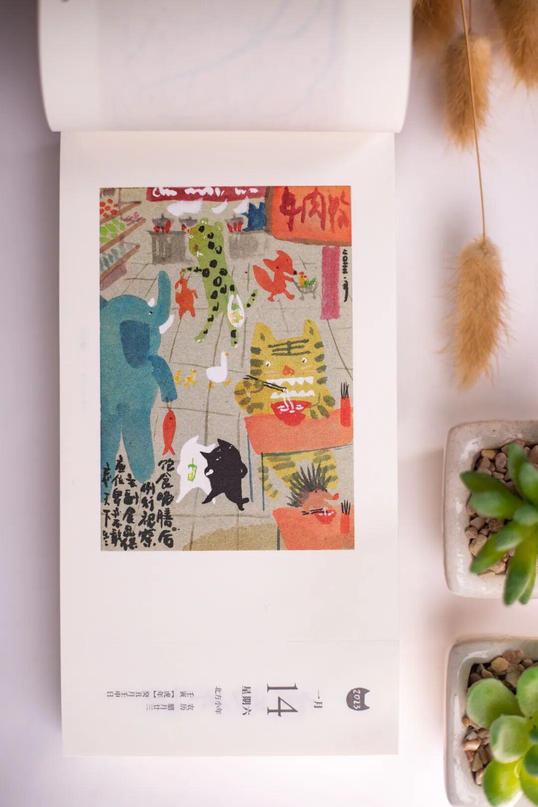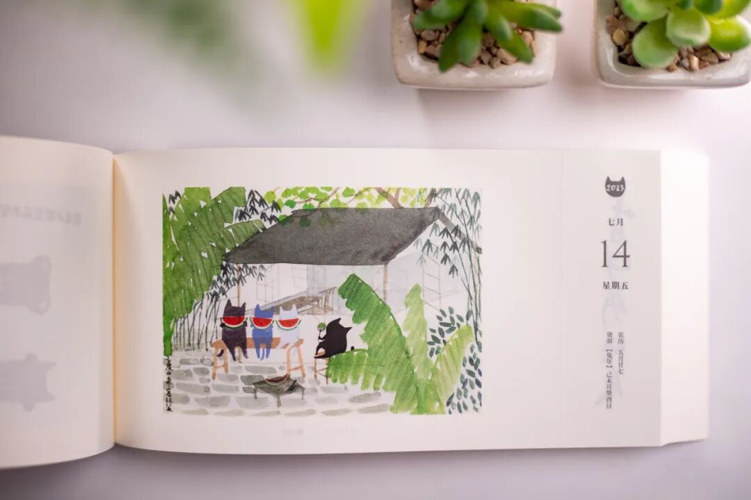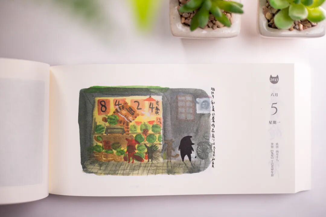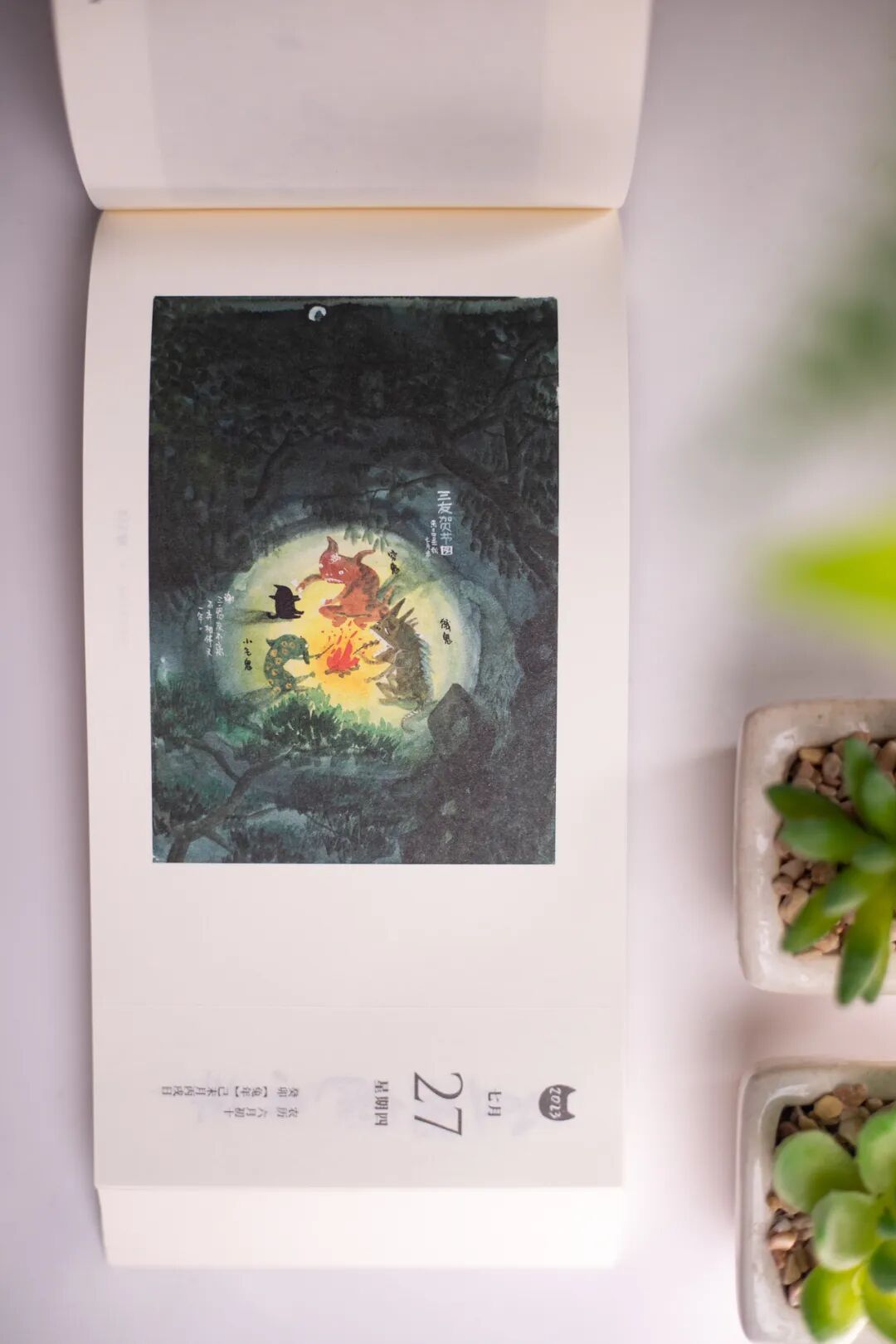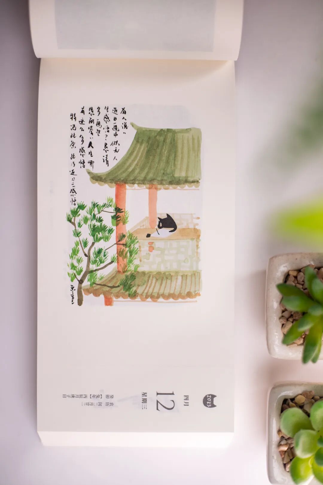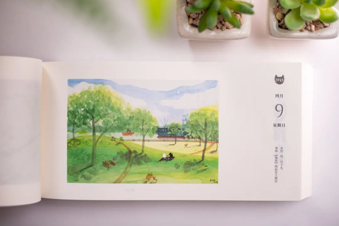 日历中的每一页插画,都是画家张乐陆用水彩颜料手绘,日历在印刷过程中也中最大程度地保留了画意。