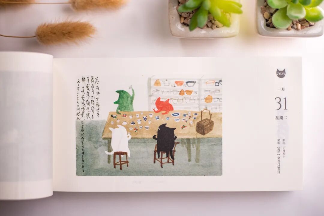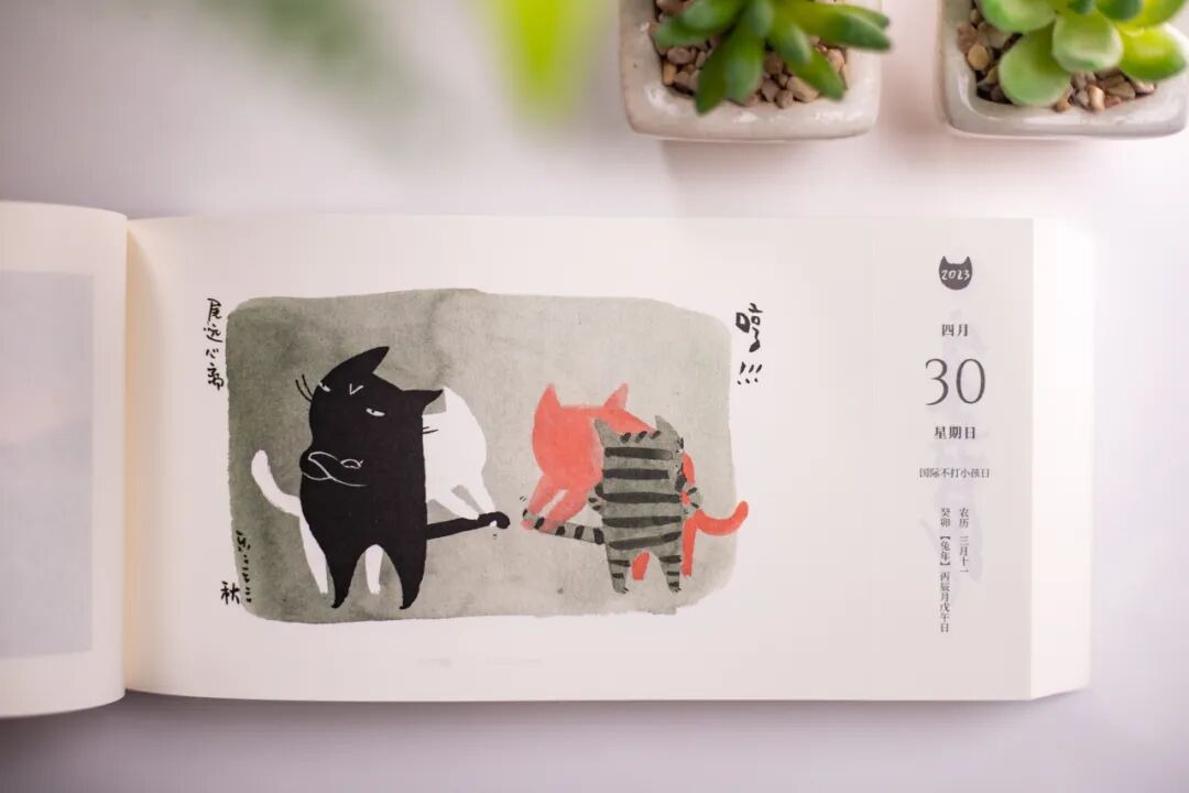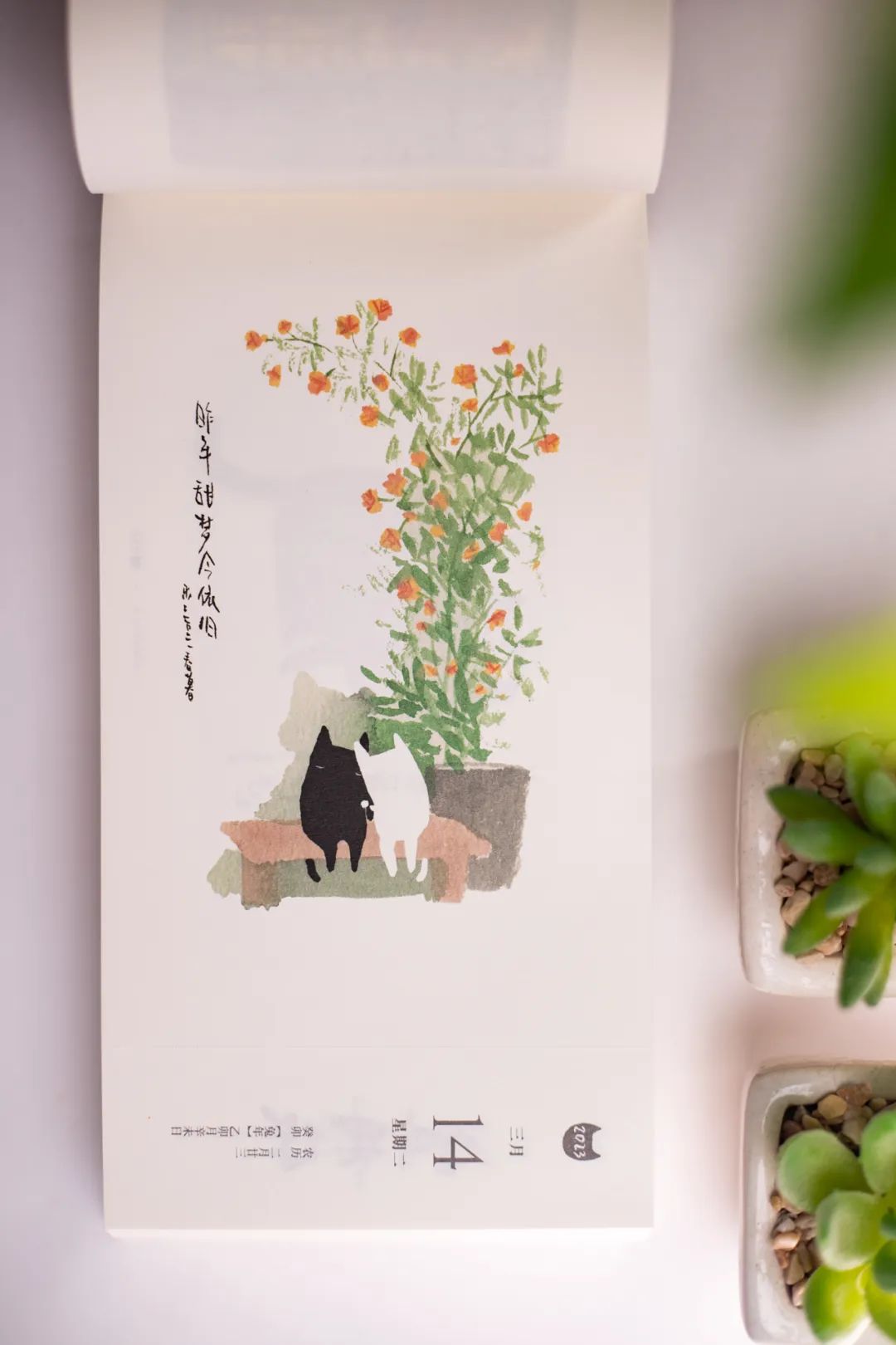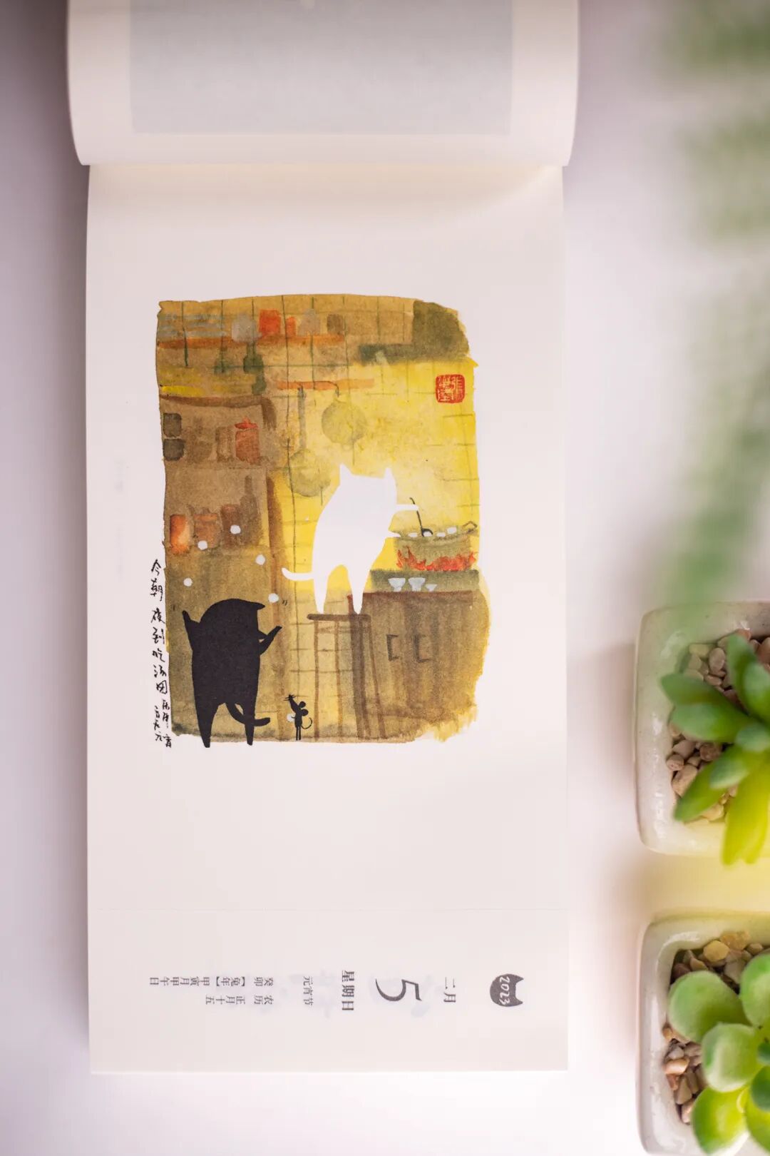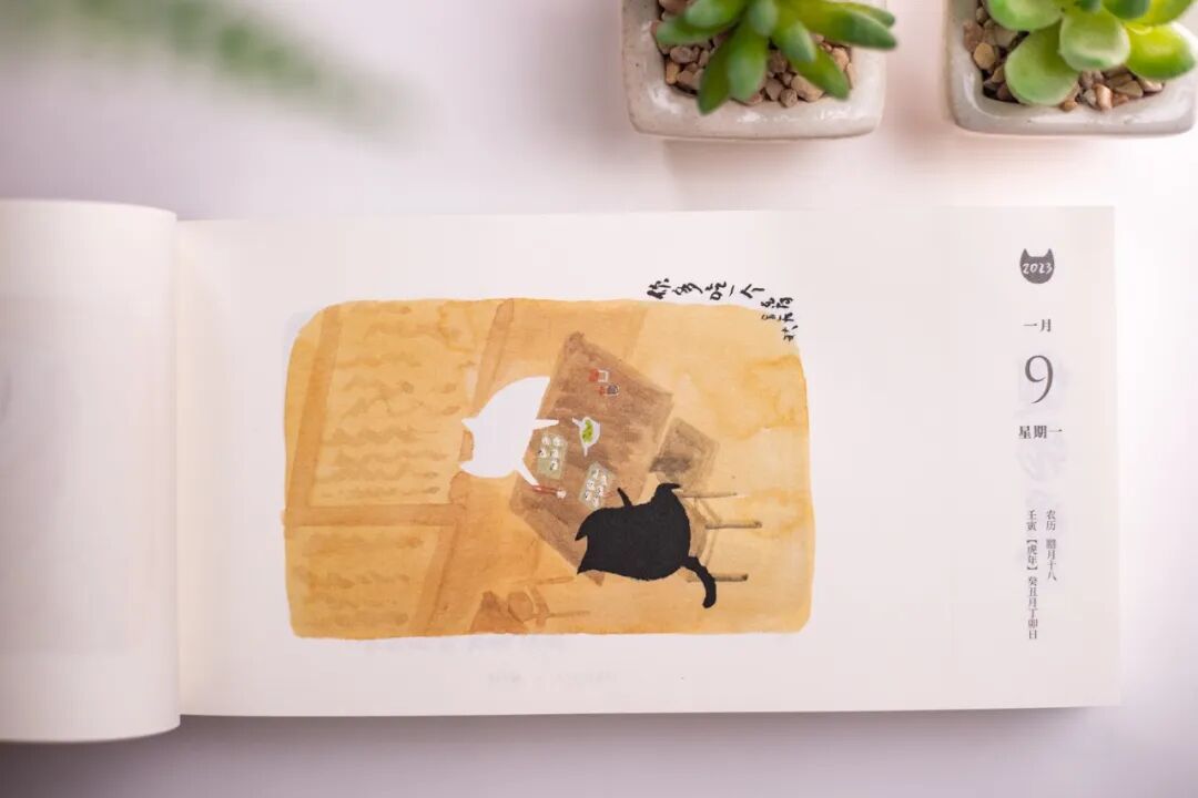 这样的一本日历摆在桌子上,日常翻来看看,看“么么黑”的猫生,再坏的心情都被治愈了。