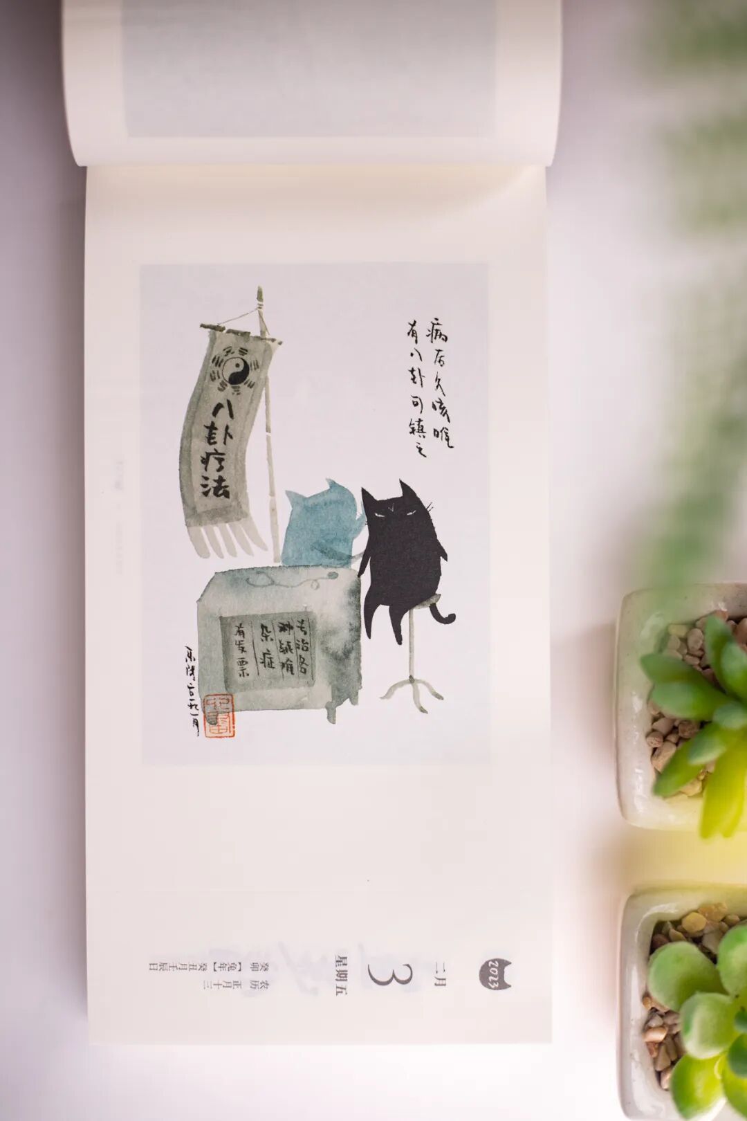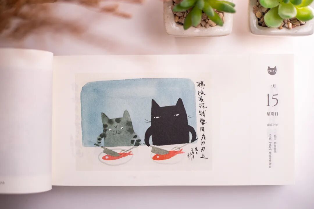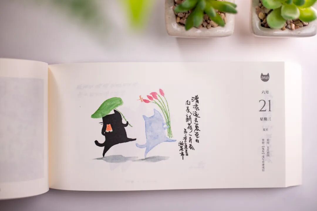 其中一款为猫历2023搭配么么黑“浮生若猫”签字笔。
