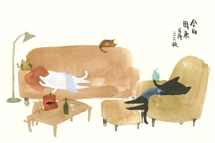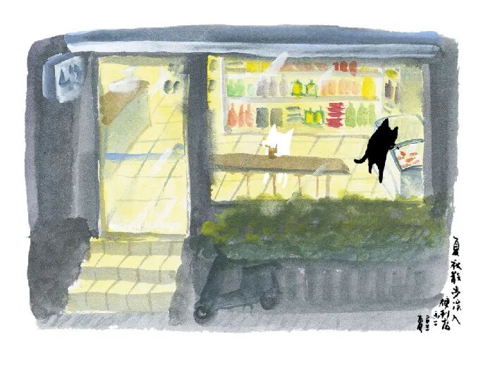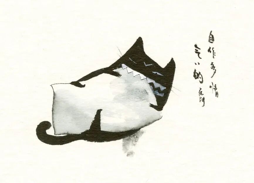但这些情绪最终都被画家的手揉进黑洞,化身成这只俏皮灵动的猫咪,抖落一身疲倦,总能逍遥、快活、不费力地生活下去。