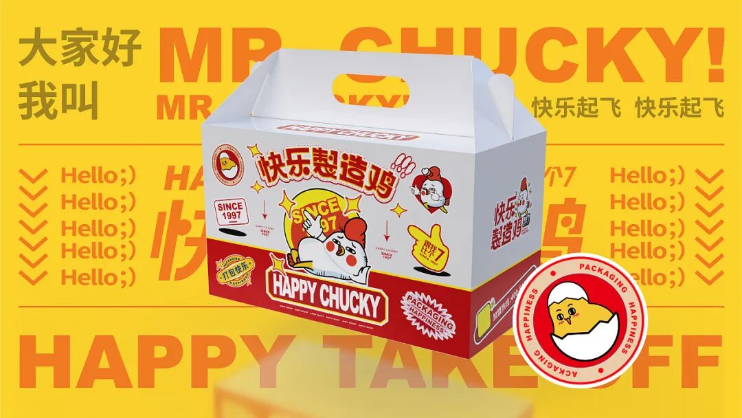 今天分享的一个【快乐制造鸡】品牌,其前身是泉州南安知名的本土炸鸡品牌【快乐基】,而此次的品牌设计升级,保留了原品牌独有的两款炸鸡配方,让品牌更具网红社交属性;并将品名改为“快乐制造鸡”,使其更具辨识度和记忆度。