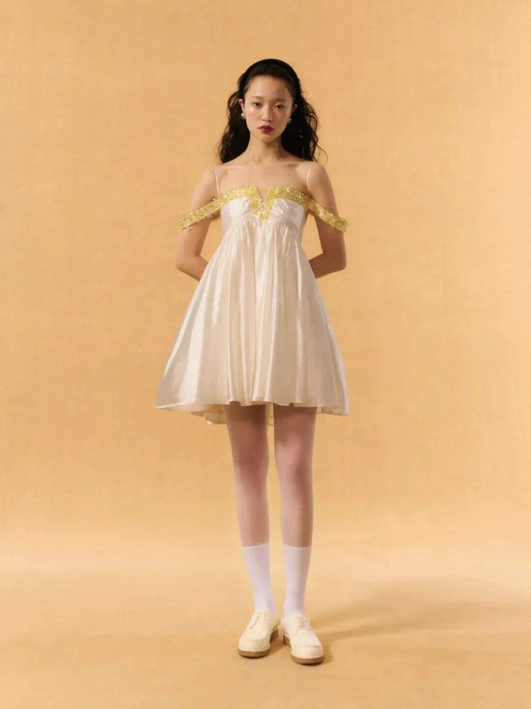 繁复手工珠片钉花为日常裙装注入清凉光彩,如气泡般闪烁是属于白昼的华服。黑色的连衣裙小礼服让身体的线条被勾勒,传递青春的朝气。“什么也不想”,这样的一天毫不费力的着装。