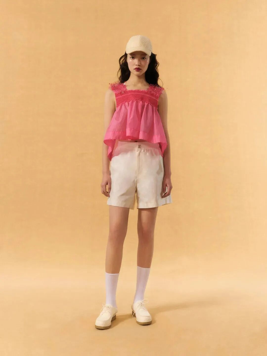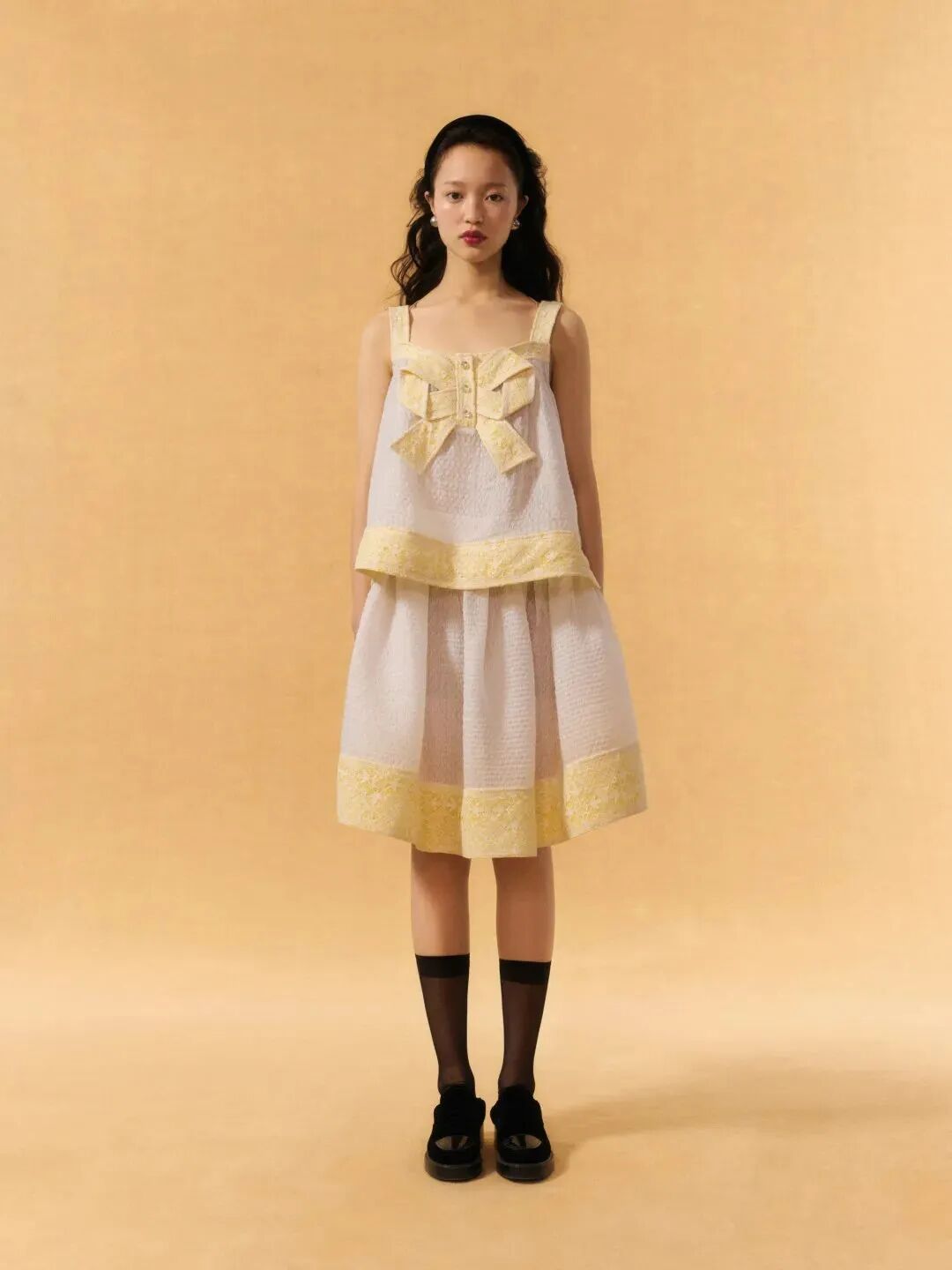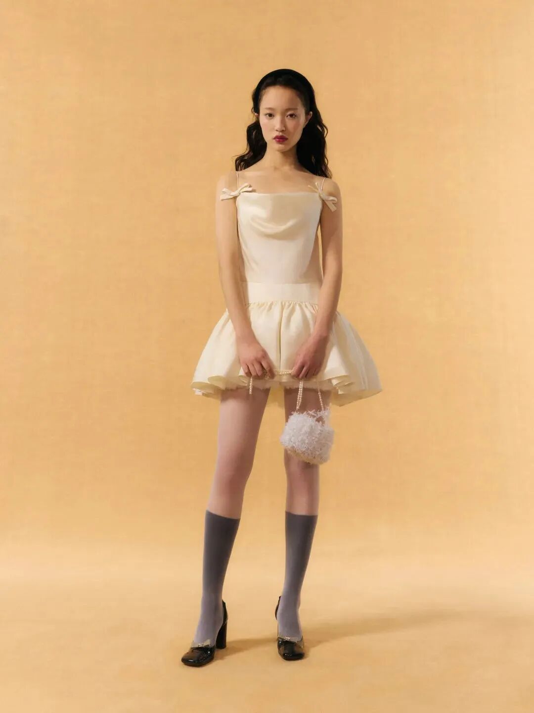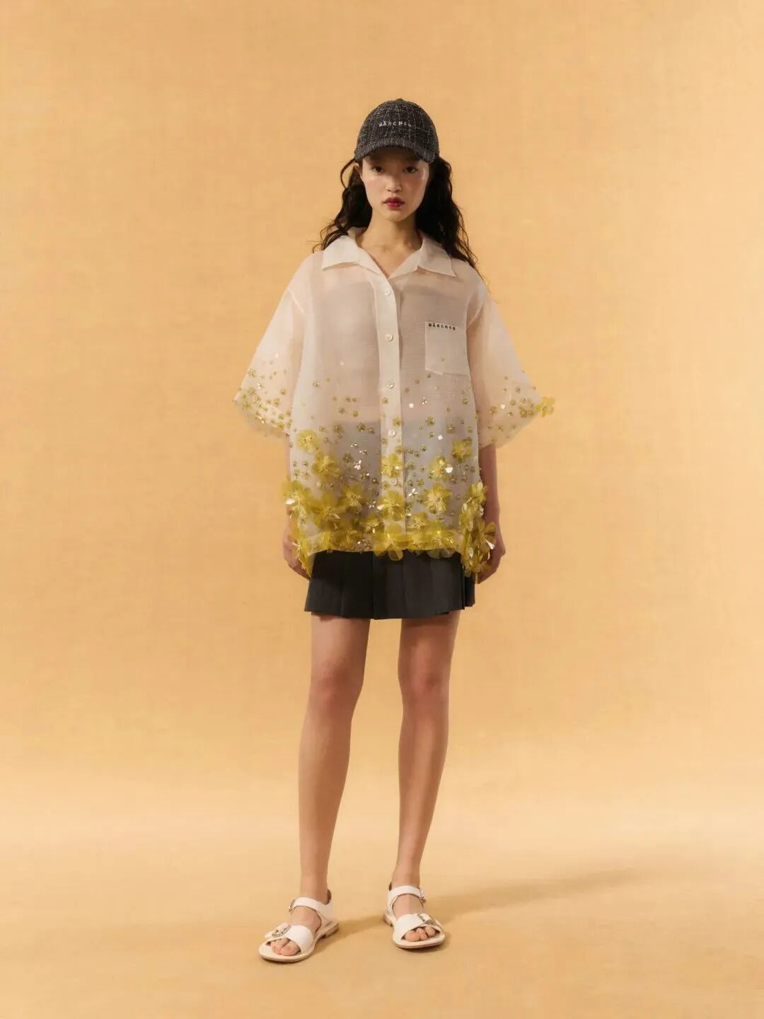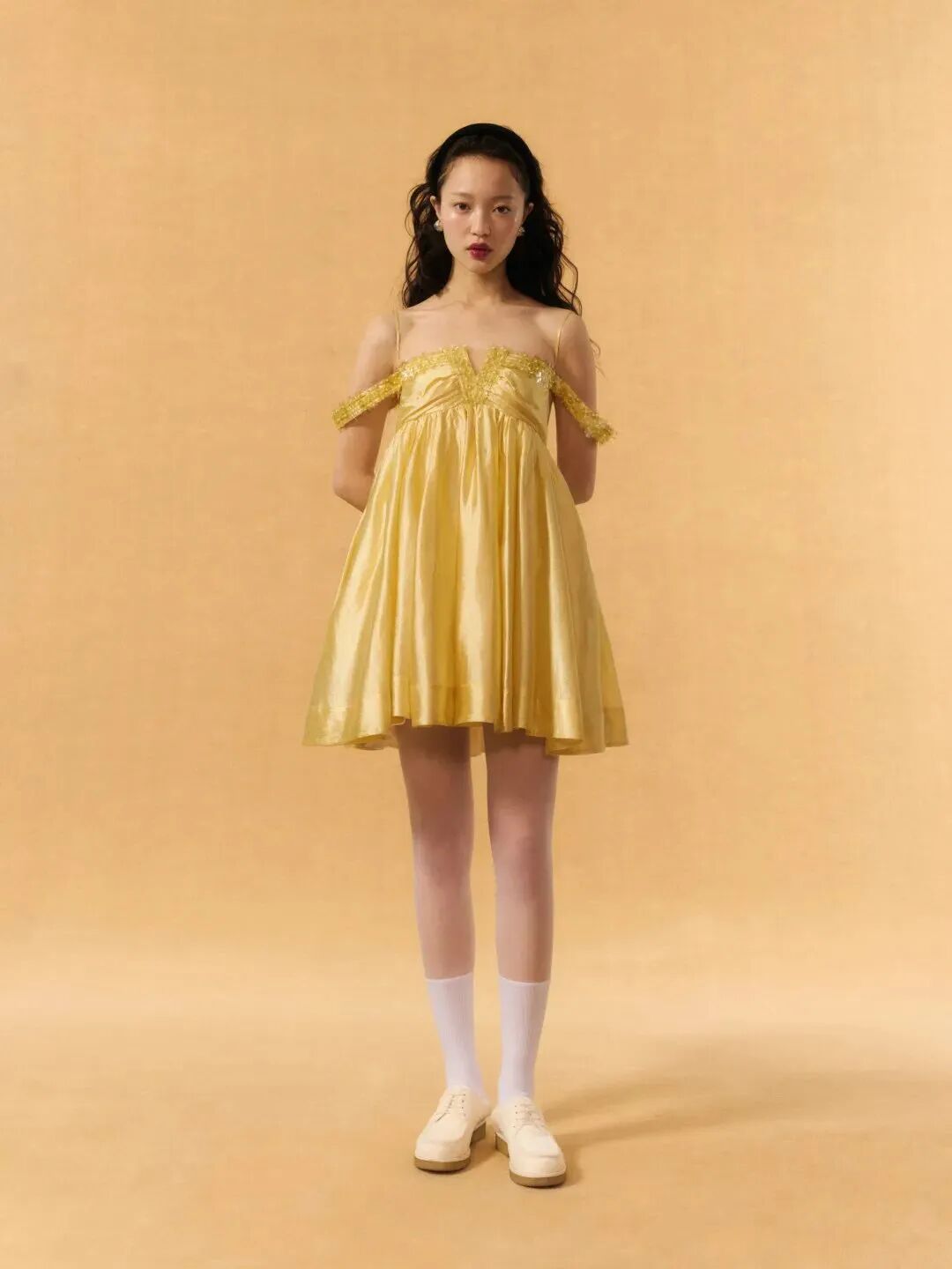 重塑女性气质,裤装与精致细节制造冲突,舒适伫立于金色的光之中。MÄRCHEN标志性真丝面料,多元再演绎印花、珠片刺绣、抽丝纹理,让夏日元素不拘一格。