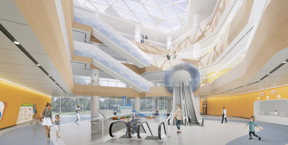 深圳市建筑工务署按照深圳市建设儿童友好型城市的要求,结合项目自身环境特点,着眼于营造舒适的儿童就医环境,将儿童友好建设理念贯穿于整个项目过程中,致力于打造“边界友好、尺度友好、活动友好、色彩友好”的儿童友好医院。