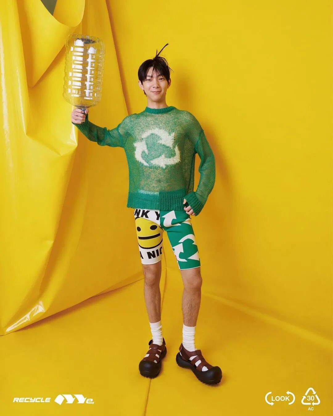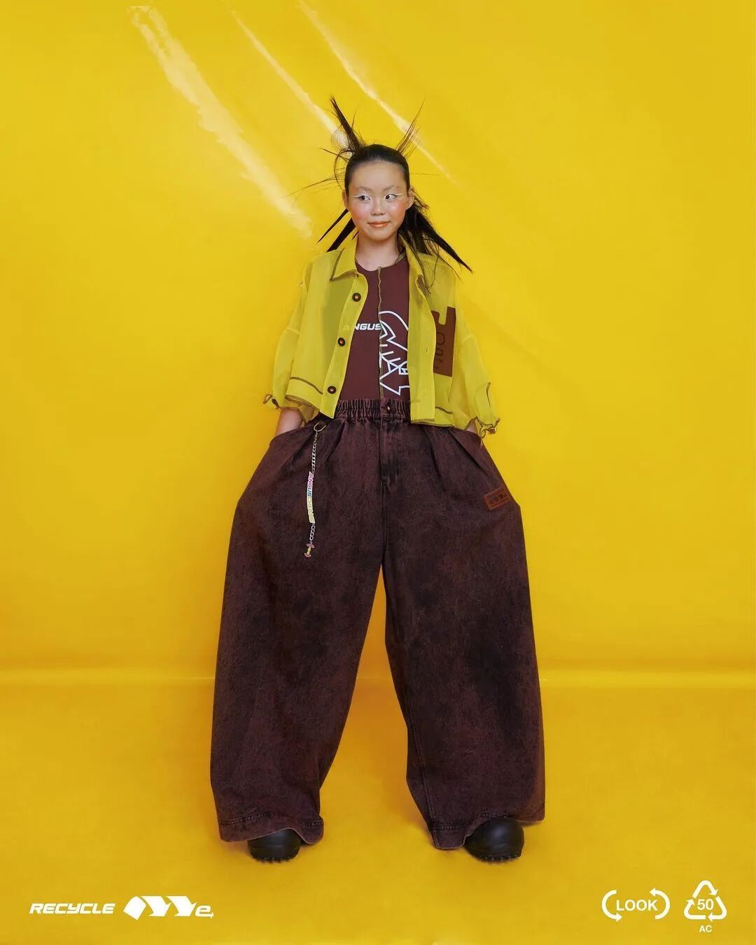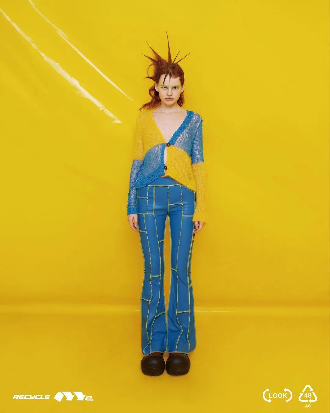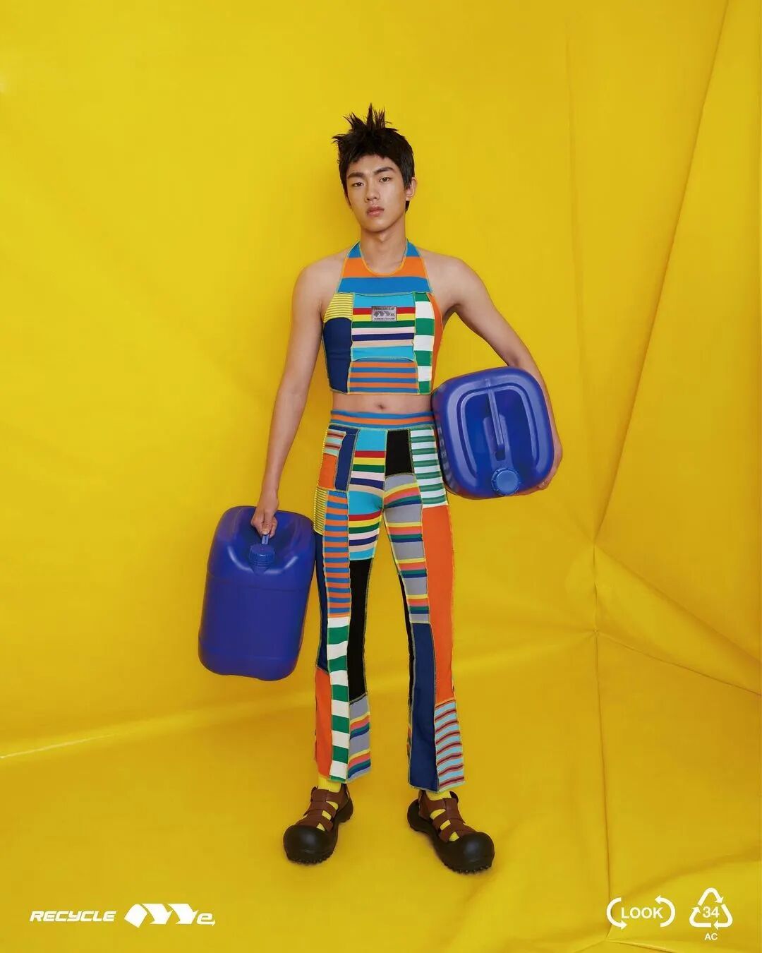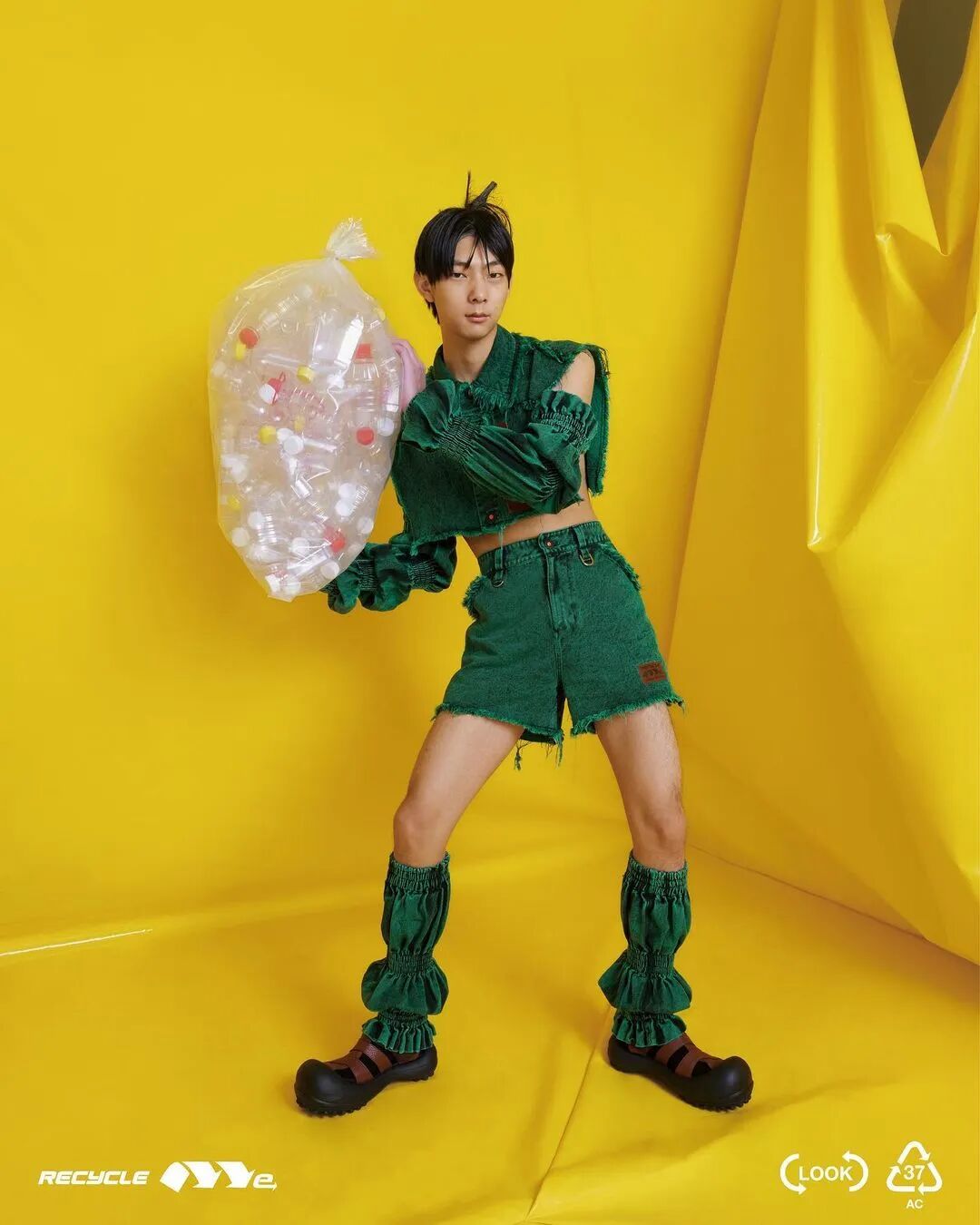 ANGUS CHIANG 2022 春夏系列“Re-Cycle-Me”,设计师以垃圾分类为灵感,将过往剩余面、辅料二次创意开发,取用垃圾袋外形的褶皱、庞大量感作为廓形,结合垃圾袋面料材质、图像、标语等细节,更将垃圾回收车之人员造型、色彩结合其中。