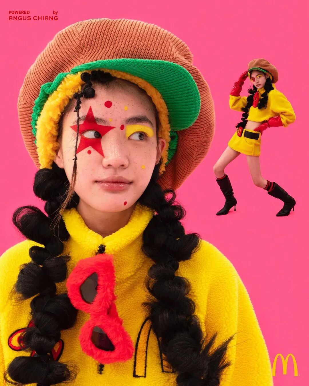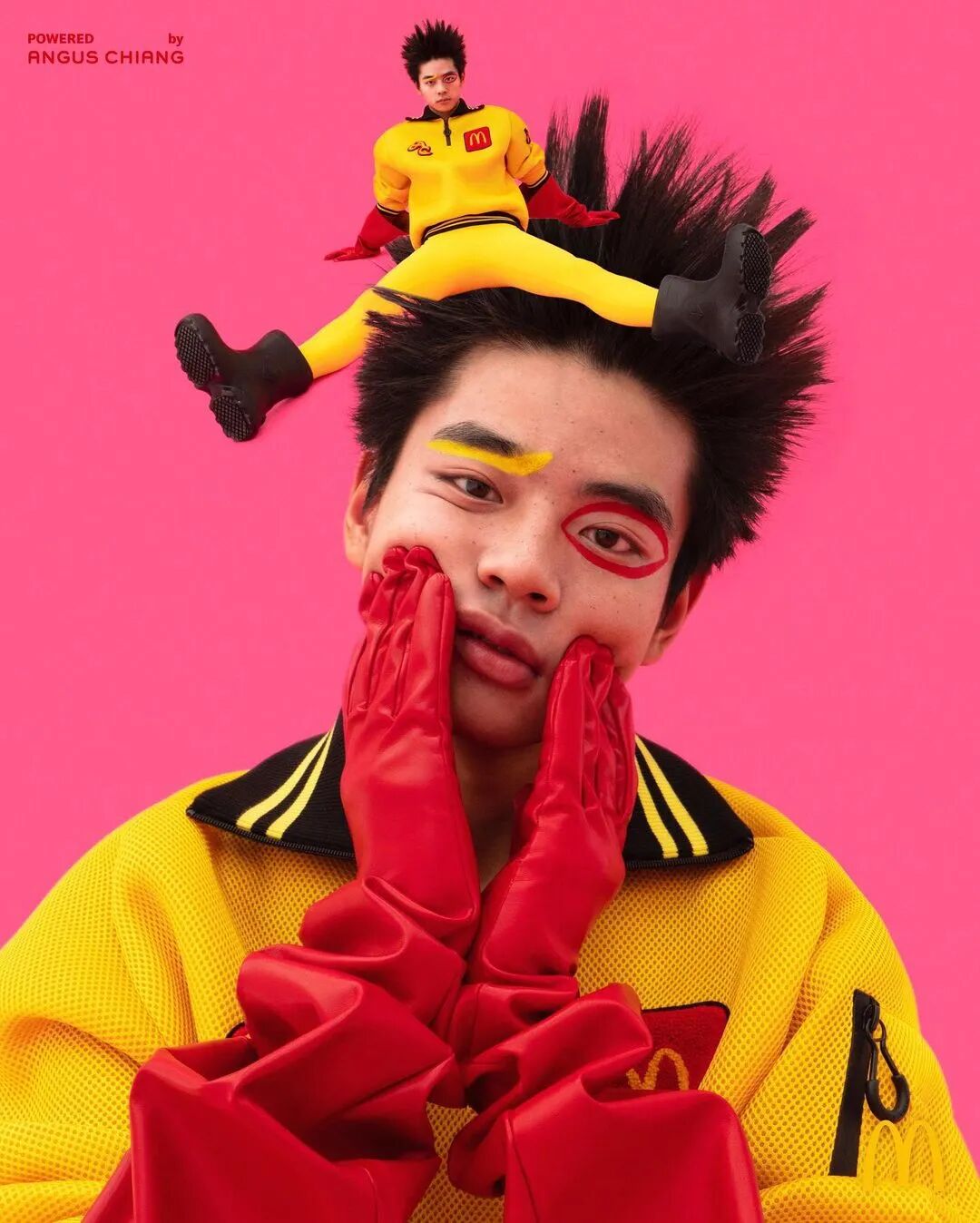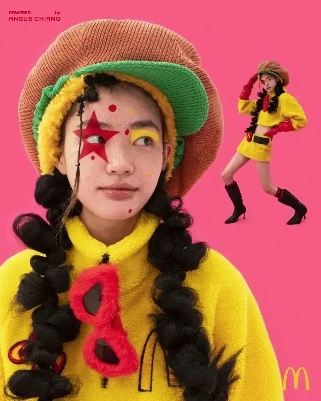 除了劲爆歌舞和走秀,更有时装设计师 ANGUS CHIANG为其打造的系列时尚单品, 以麦当劳最有辨识度的红、黄为主色调,丰富的设计语言融合幽默怪诞街头风格完美演绎麦辣气息。