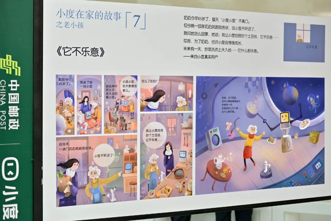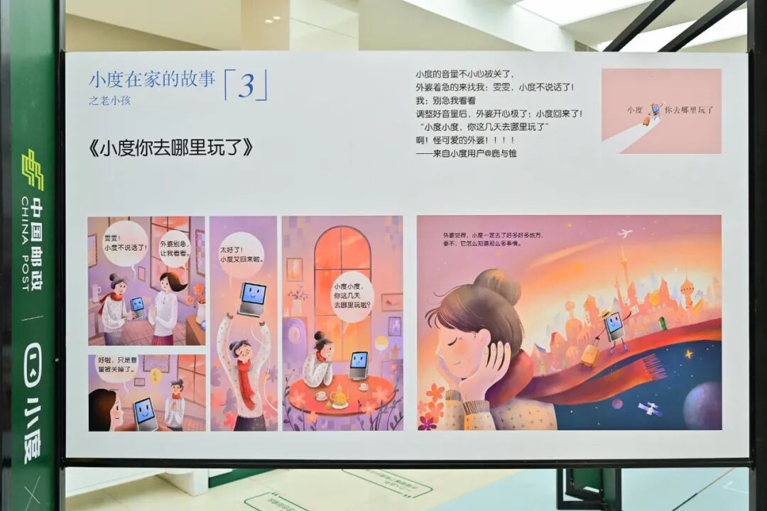 而这一次,除了通过画展的方式讲述“小度在家的故事”之外,小度还联合中国邮政将这些来自用户的真实故事打造成定制明信片和绘本邮册,“老与新”的结合让人耳目一新。