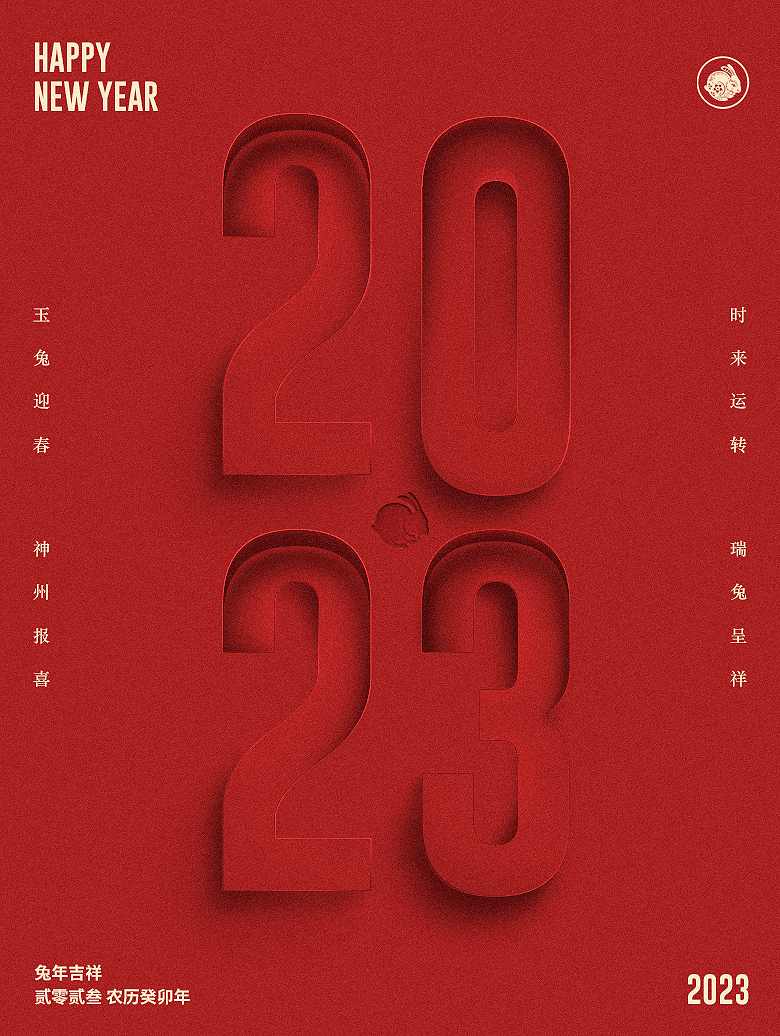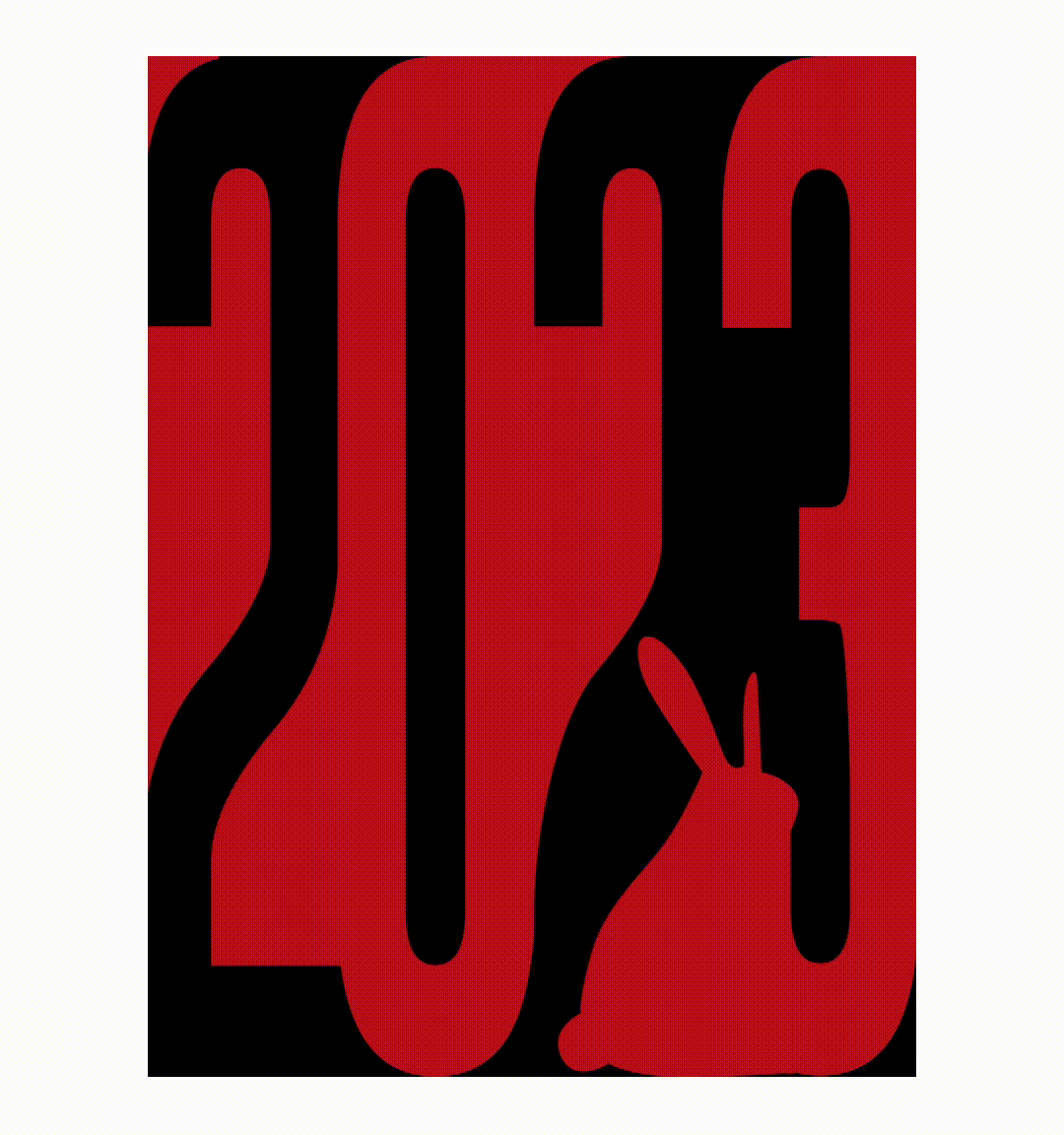 将兔子的剪影融合在数字负空间之中,与兔年结合的设计更有跨年的味道,加上简单的文字编排,一张偏概念艺术的跨年海报就做好了。