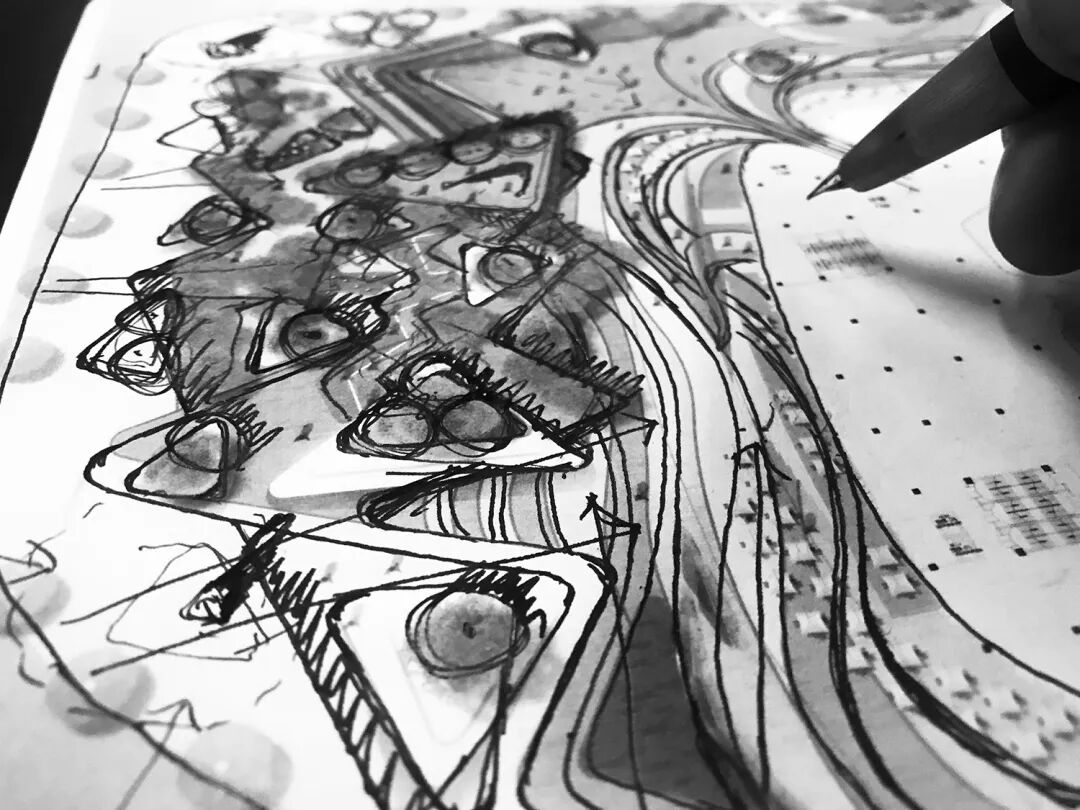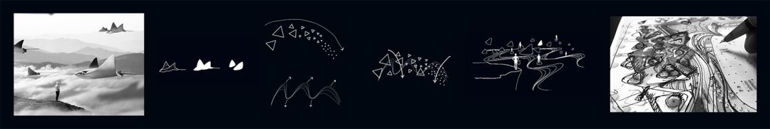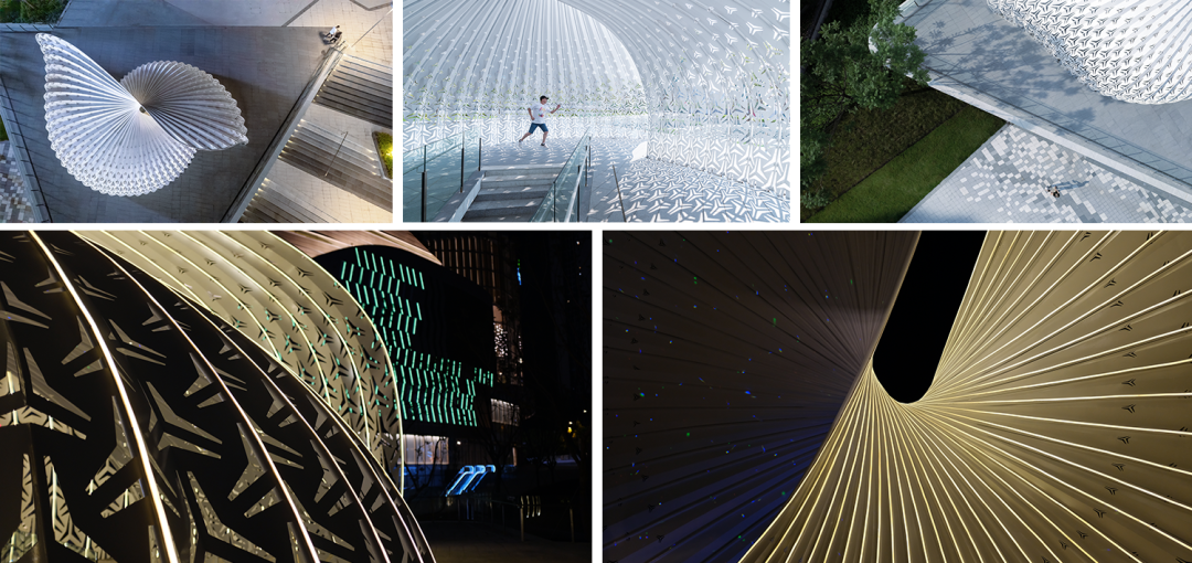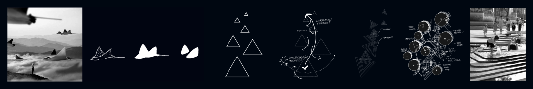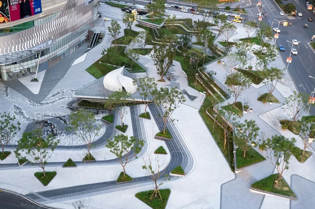 项目都市到达广场成为周围社区和购物公园之间的天然过渡区,通过一系列起伏变化的空间,和层次丰富的绿植设置,营造出梦幻般的海底世界,结合从魔鬼鱼(manta ray)中提取的抽象元素,吸引人们进入这里,仿佛置身真实的海底世界,这里有一群“魔鬼鱼”在这一片海洋空间中自由畅游。