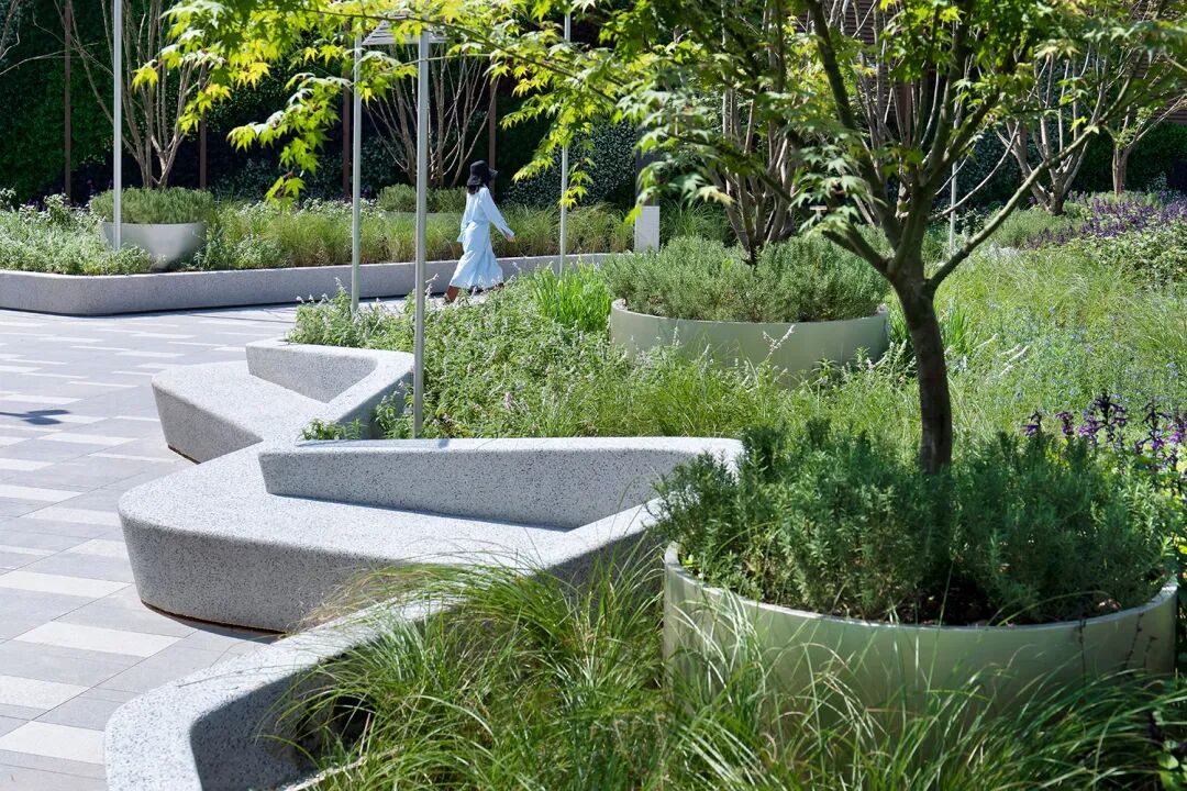 At the highest point of the development, the Sky Gardens provide a peaceful retreat from the busy levels below and an environment for people to meander and explore drifts of seasonal and flowering plants. These also offer a much-needed resource for pollinating insects and wildlife. More generally, most of the plants installed across the entirety of the project’s 50,000 square metres are local species, requiring lower maintenance and less water.