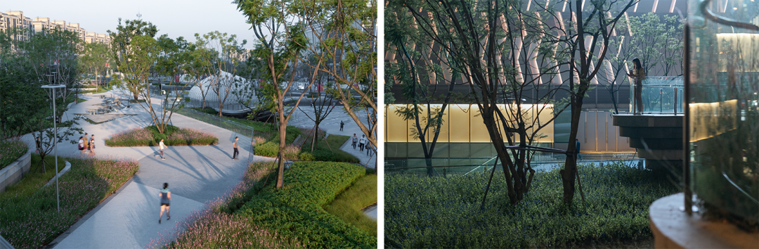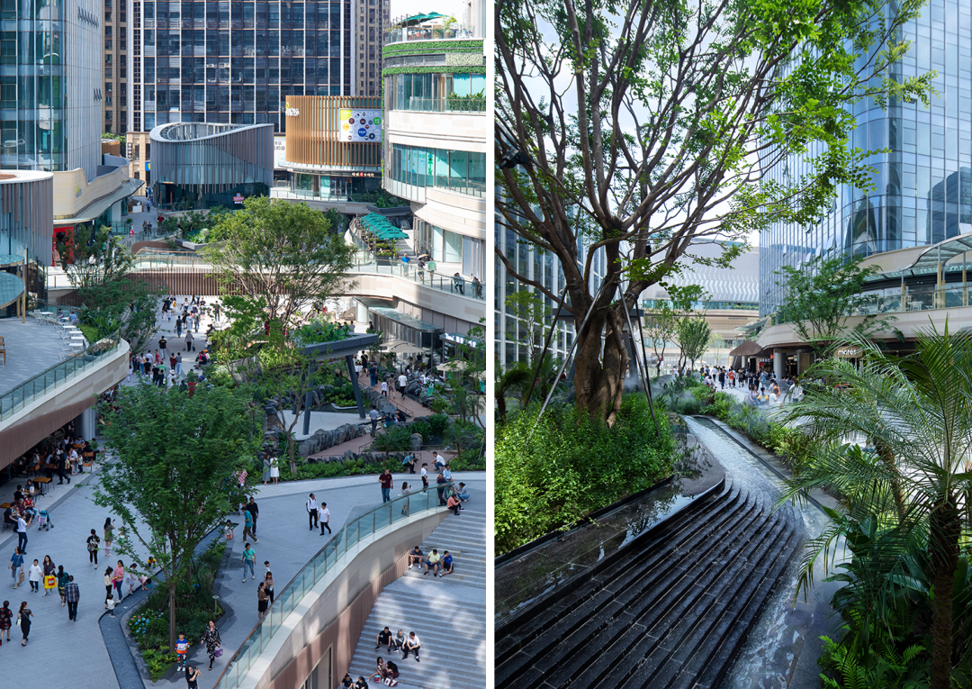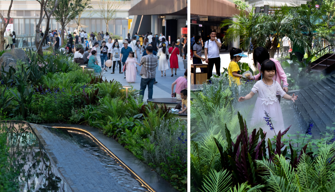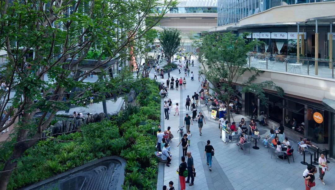 人们身处互联网的迅速发展、全球气候恶化、疫情频发的当代,对于新空间的诉求也不断产生变化。香港置地和设计师们开始重新审视公共商业零售空间的定位和作用。光环购物公园重新定义了公共商业空间模式,即是将自然、社会文化带入商业空间使其转变为具有社交属性、自然属性的综合空间,为在城市中生活的人们创造更多美好瞬间和体验,并在实际景观设计策略上缓解城市生态环境的压力。