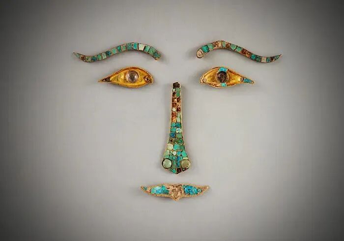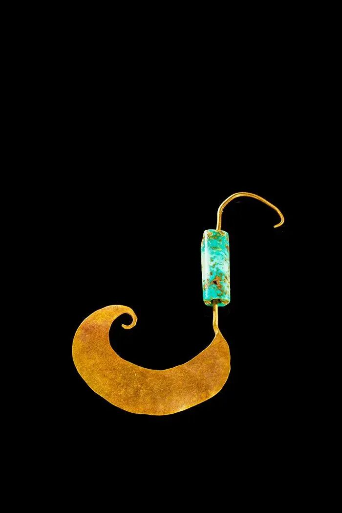 公元前3—4世纪 异鸟纹胸饰 金镶绿松石