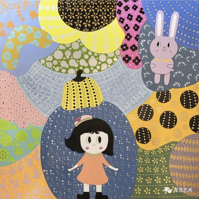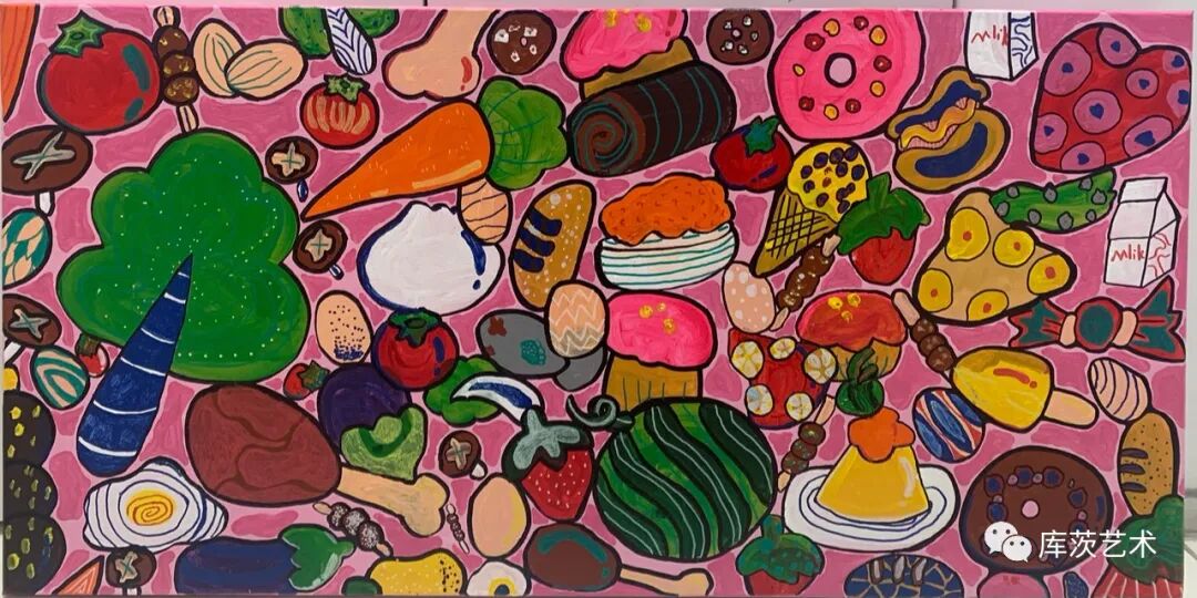 许逸靖8岁《粉色奶牛身上的配菜》布面丙烯2022
