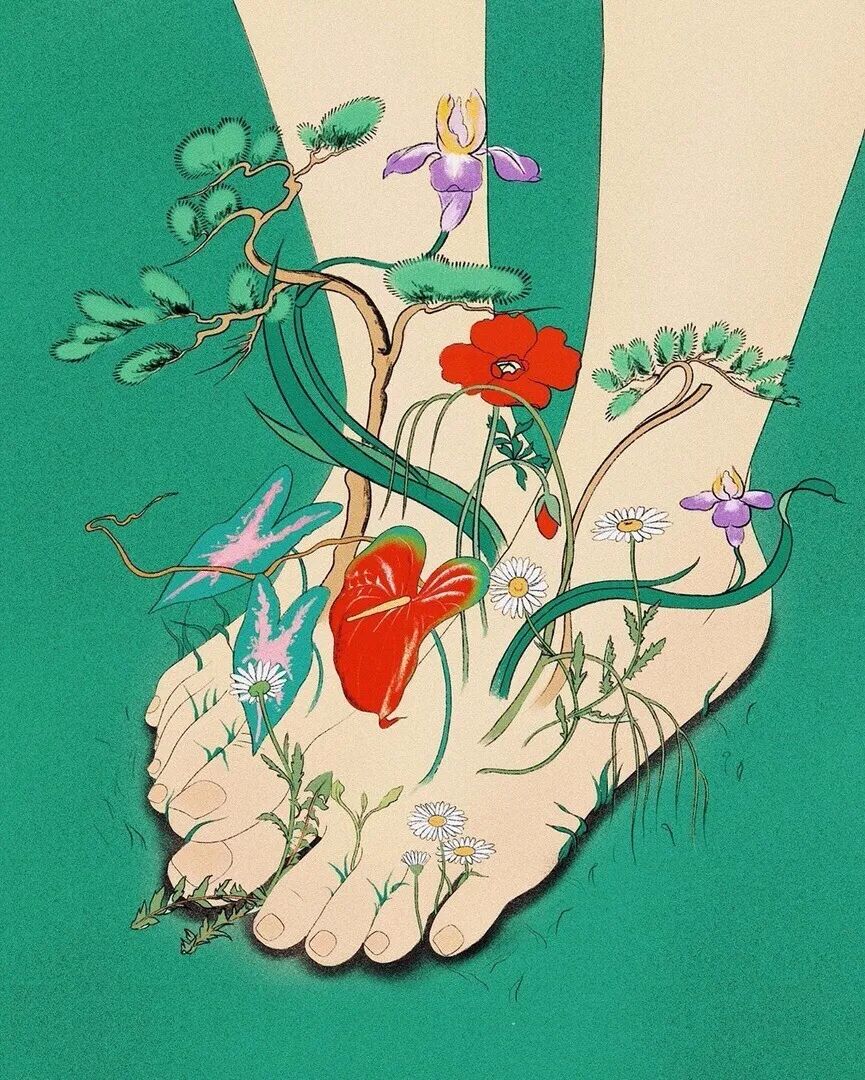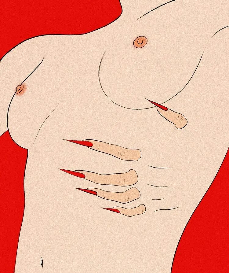 在Miki Kim的插画世界里,她用流畅的线条和柔和的调色板创造了自己大胆的图像——每一具躯体都在经历着消解、重组的微妙(恐怖)时刻。