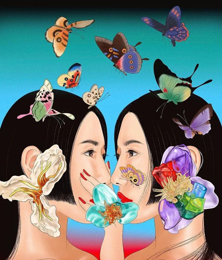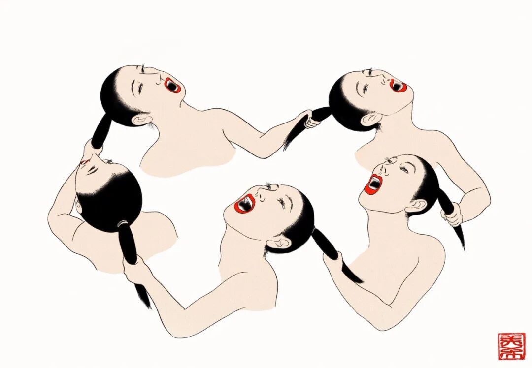 比如基于一种女性视角的表达,她会“戏弄”日本浮世绘中的少女形象,或大方展示女性的身体肢体,用想象力使人们羞而不谈的性爱场景变得有趣。