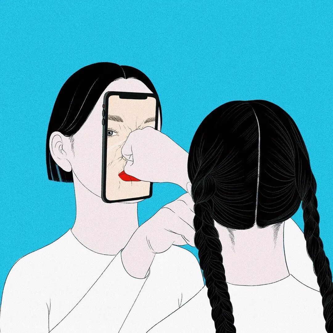 哭掉眼珠子,脸上长手机,这位美女的画刺痛了多少人?