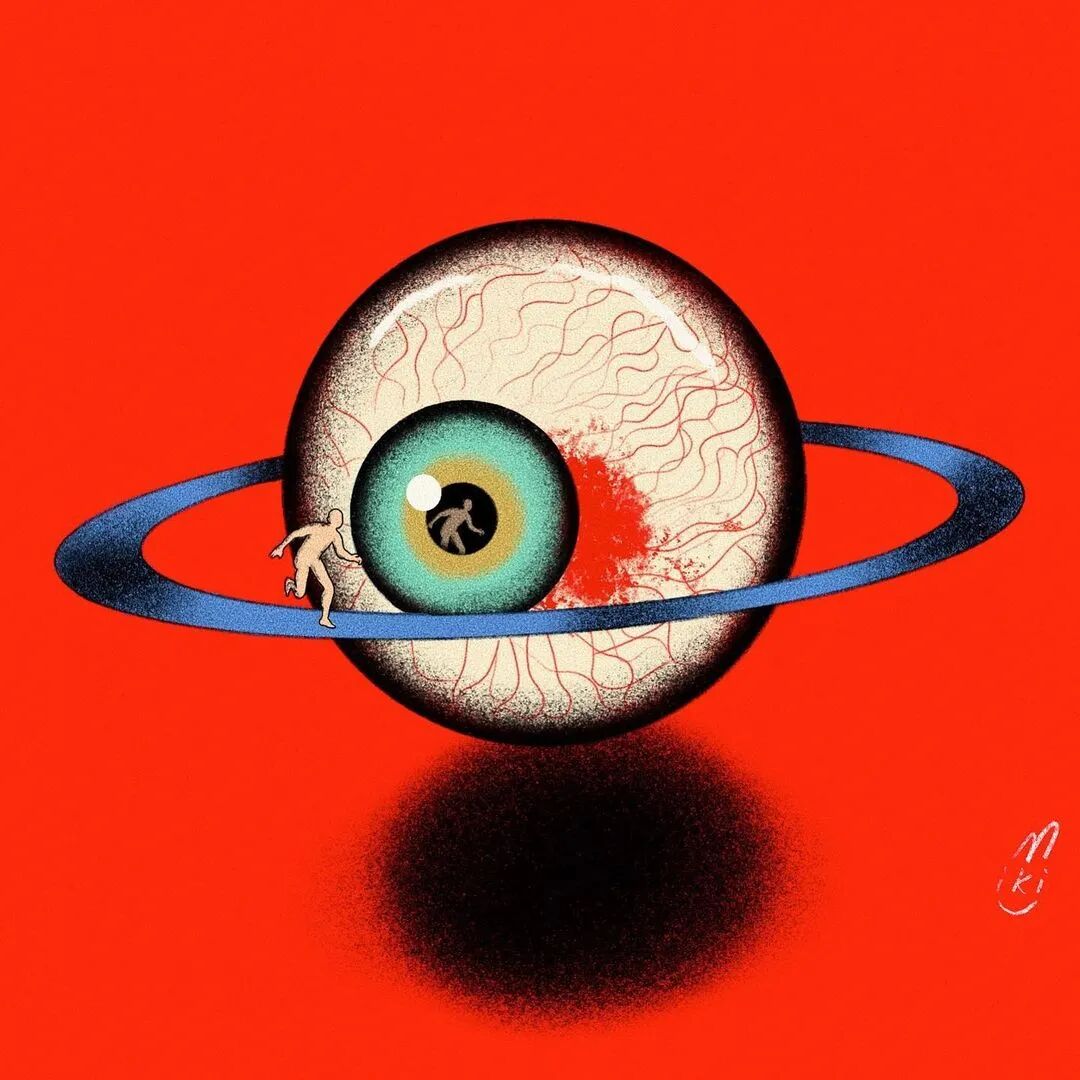 眼球成了一颗星球,注视着人在轨道奔跑......