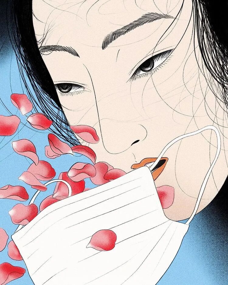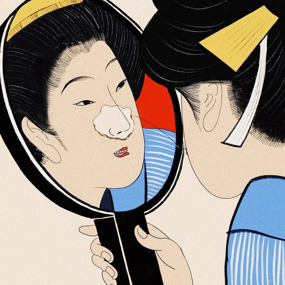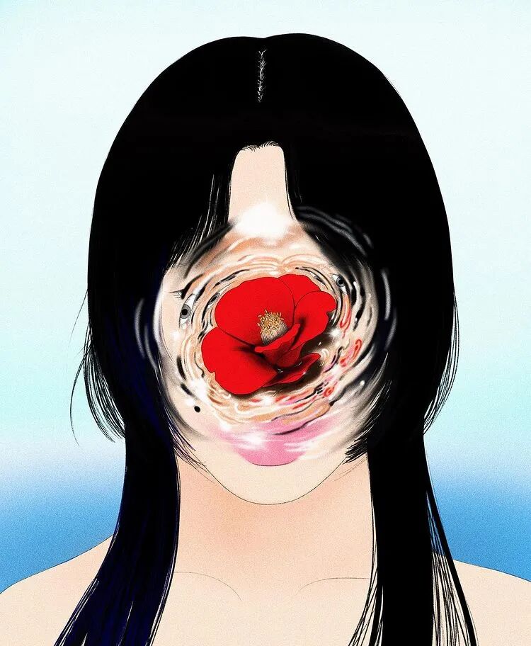 韩国艺术家 Miki Kim的插画,大多都以这样冲击力极强的画面给人留下深刻印象。