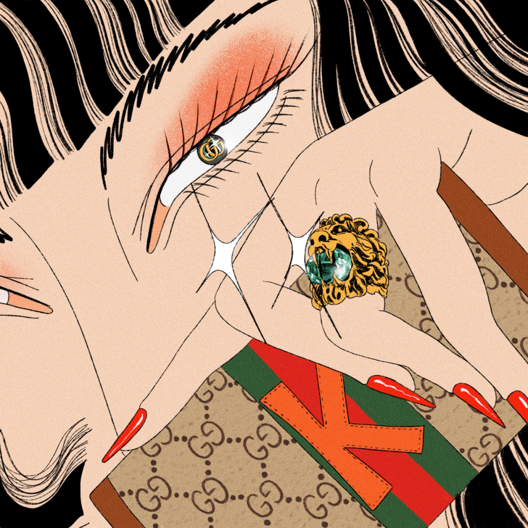 带着诡异又耐人寻味的独特画面创意,也使得她被著名奢侈品品牌Gucci相中,邀约联名向更多人展示这些陆离怪奇的东方画作韵味。