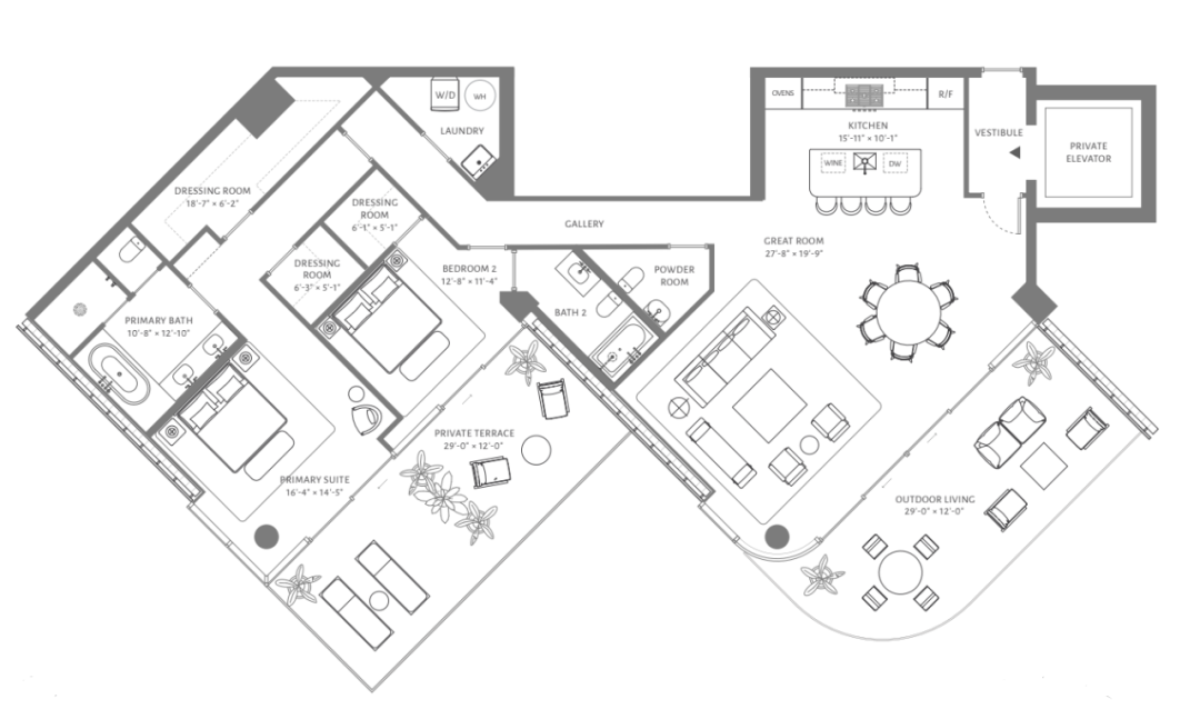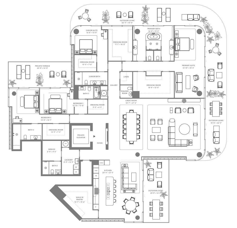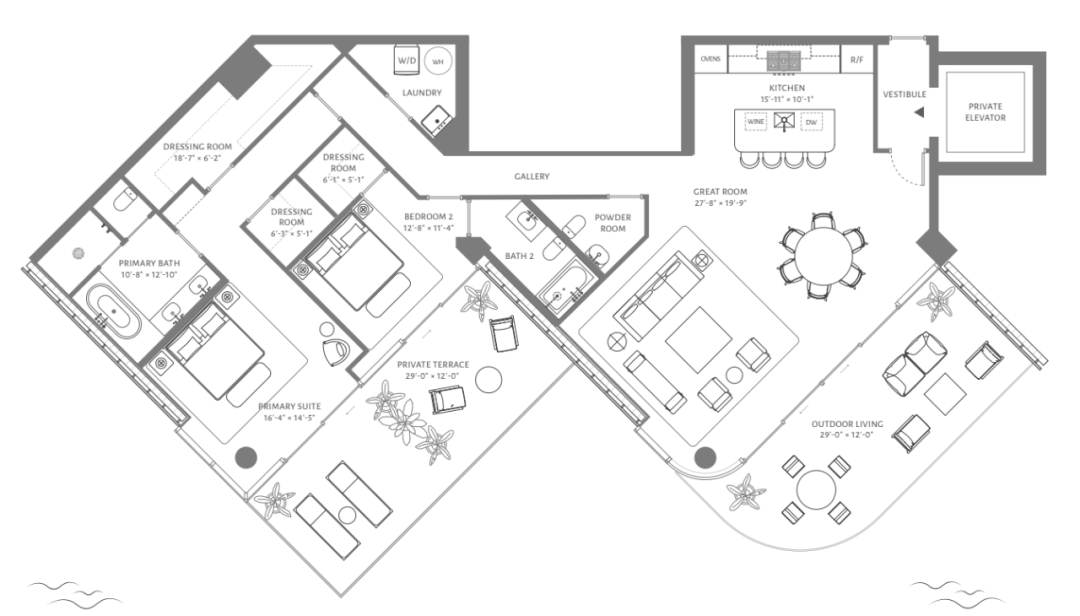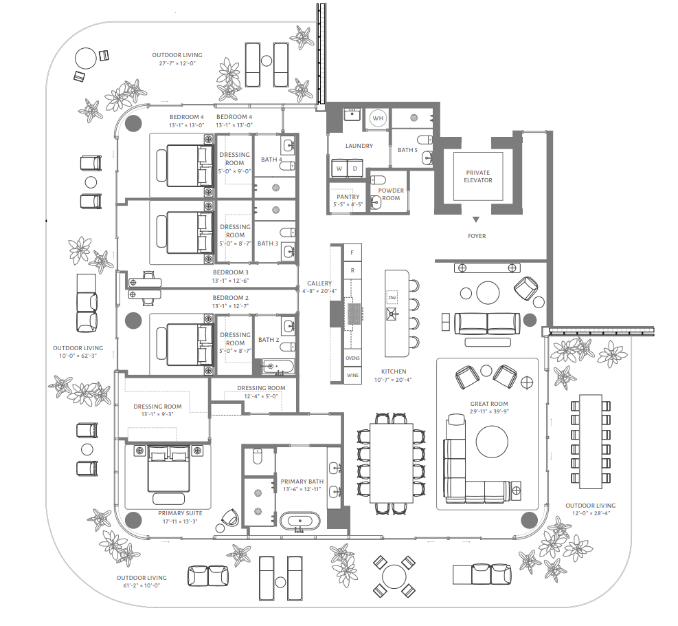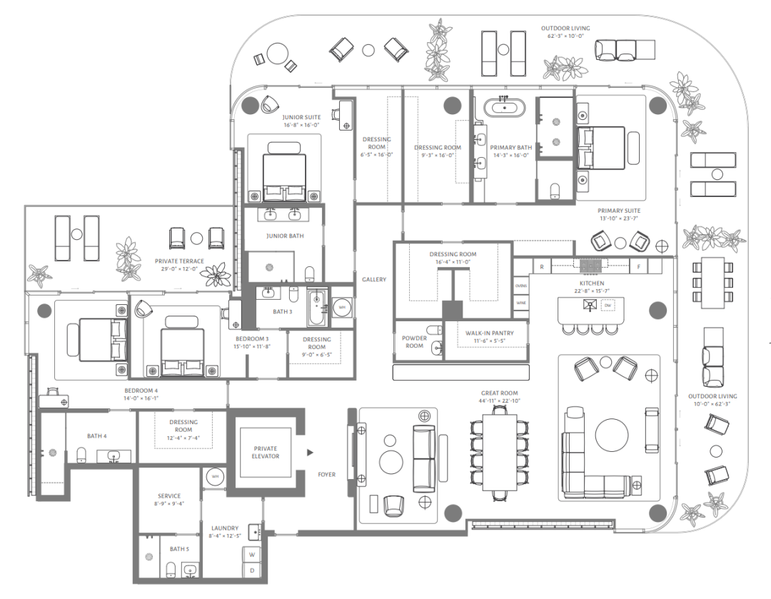住户还可以享受如住宅管家,体验专门的生活礼宾服务,去招牌海滨餐厅用餐,以及在花园和冥想休息区内俯瞰大西洋的景色。