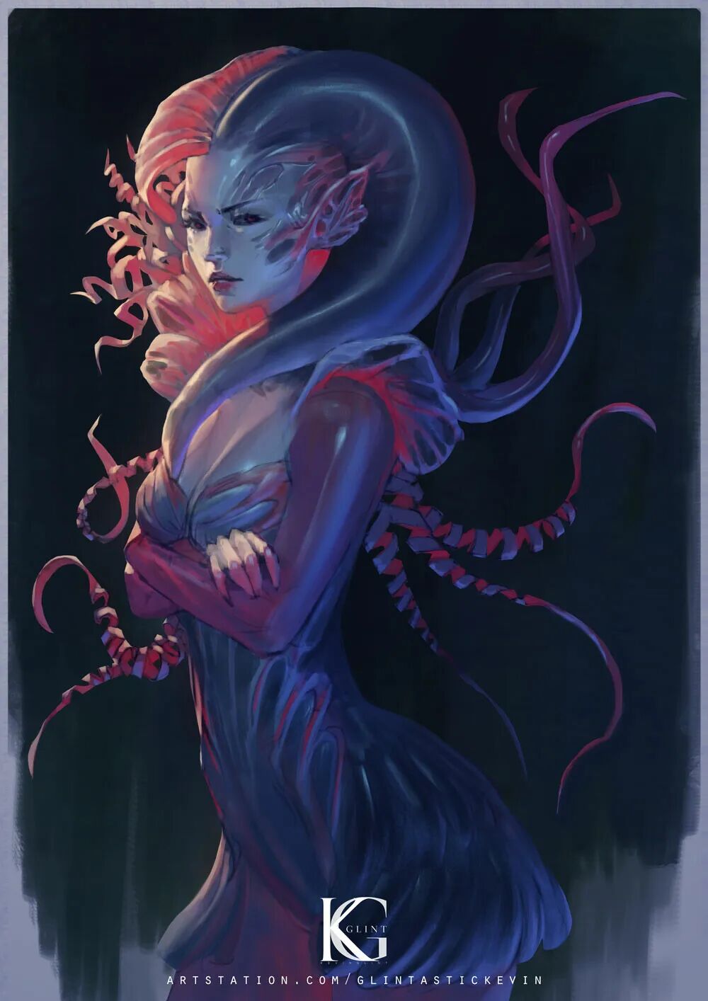 除过大量机甲作品,Kevin Glint也一直在创作自己的个人项目,《Unsettling Depths》中的角色既保留了大量生物特征,又有人类形态,奇异的美感背后隐藏着的是危险。这个系列色彩十分吸睛,细节也非常细腻。