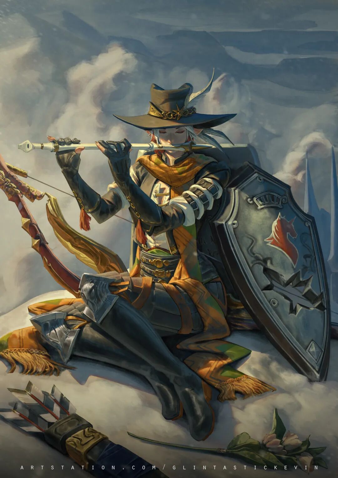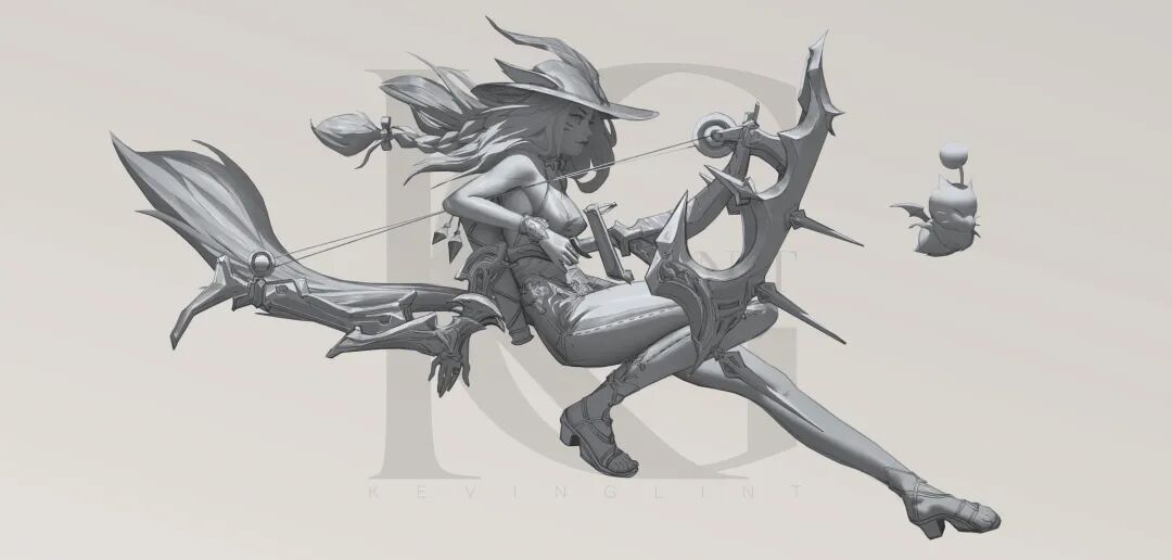 Kevin Glint同时也在创作另一个个人项目《OMNIEXIENT》,他设计了女猎人“Lucy”的原创角色,造型外观设计舒展帅气,服装与发色的对比很有特色,非常有质感。