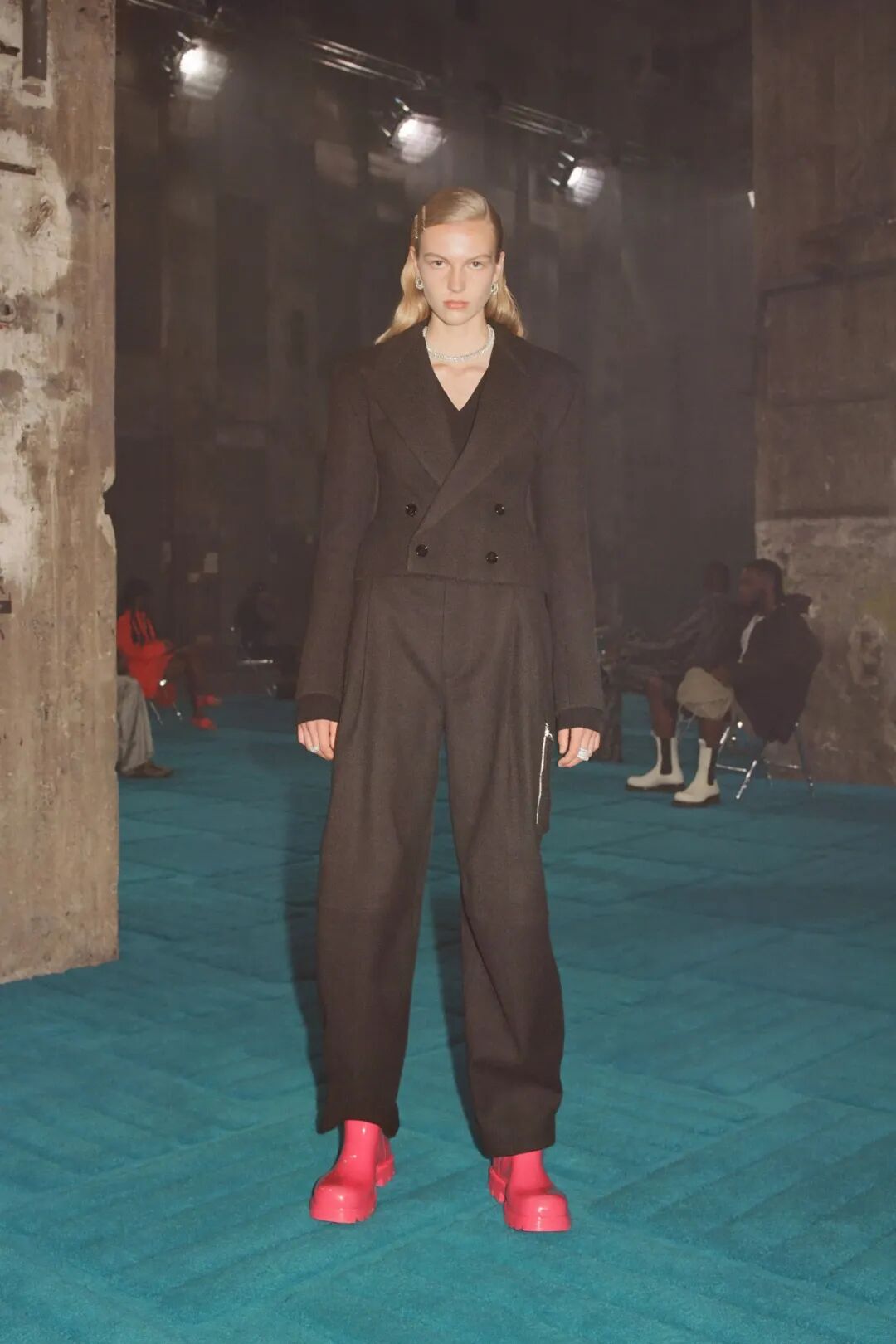 延续2021春夏推出的 Salon 01,2021秋冬系列发布选址德国柏林知名的 Techno 俱乐部 Berghain。在秋冬系列的设计中,Daniel Lee 运用了大量实验性的材料与剪裁,延续了品牌之前标志性的设计元素与色彩,非常具有视觉冲击力。