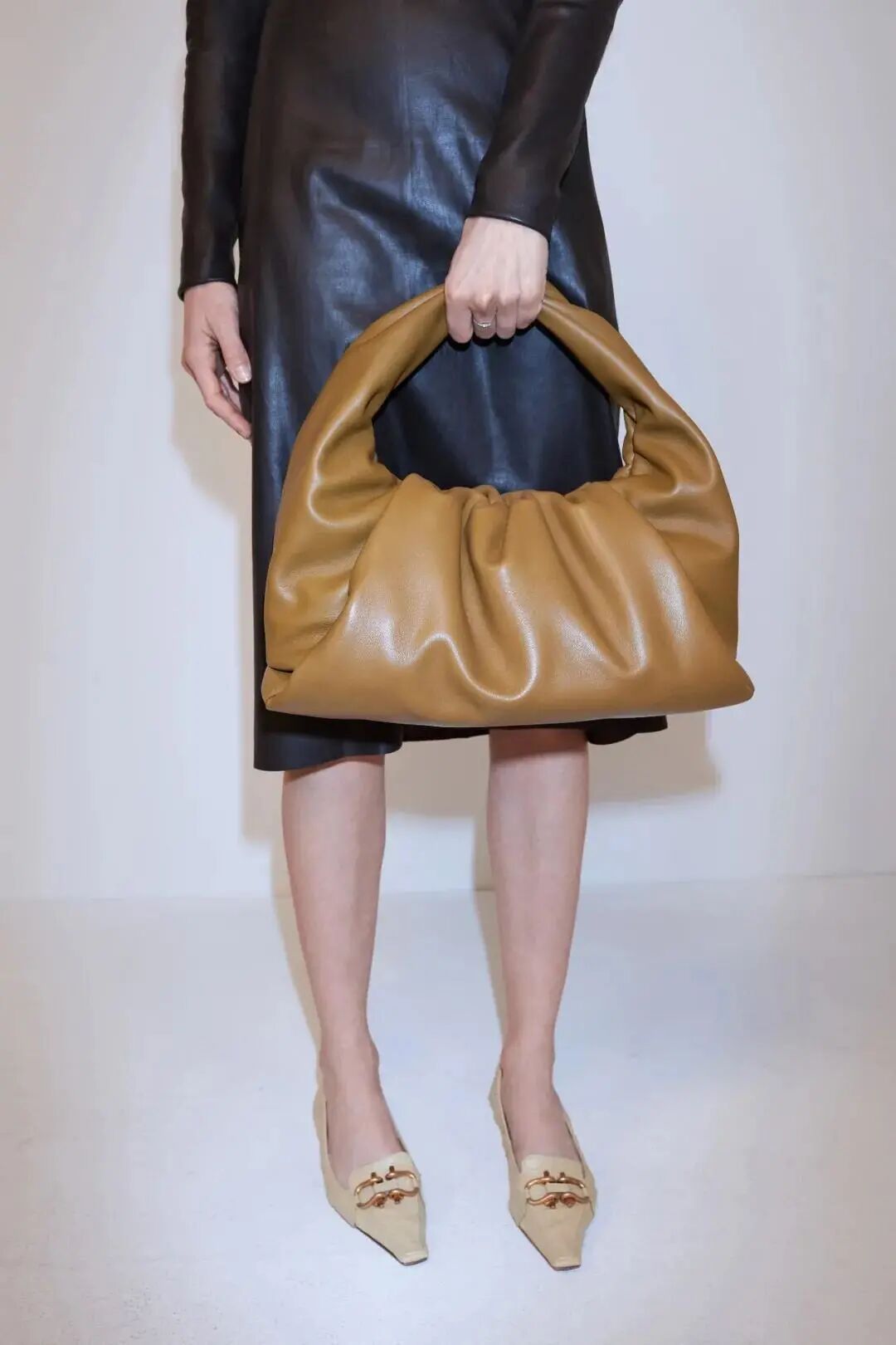 作为 Daniel Lee 来到 Bottega Veneta 之后设计的首款包袋系列,The Pouch 继承了他在 Céline 时期的所有“性冷感”意志,简简单单无多余修饰的云朵包身,自然的垂褶设计优雅又简练。