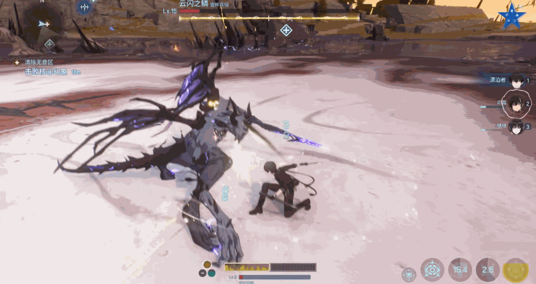 而在游戏动作的对抗性上,玩家同时拥有闪避(鼠标右键)和「弹刀」(鼠标左键)两种招架手段,前者在不少ARPG游戏中相当常见,后者则是库洛游戏在《战双帕弥什》(下称《战双》)中就使用过的Boss对抗机制。