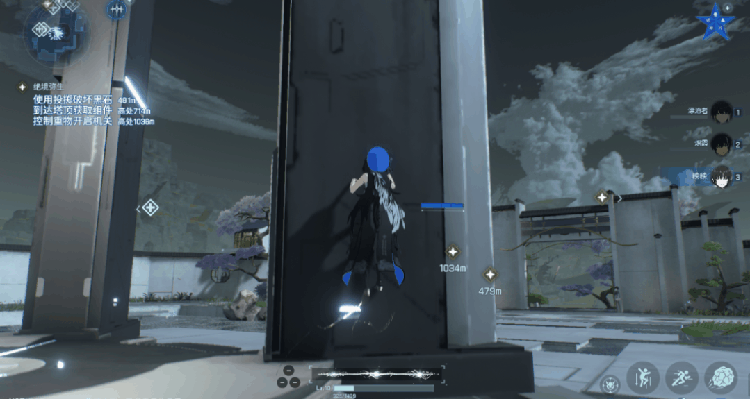 在这方面,《鸣潮》提供了更敏捷的攀爬手段「跑墙」,这在先前游戏公开的实录PV中也有展示,实际操作为在角色冲刺过程中,可以仅依靠双脚攀登上建筑物墙壁,但会同时大幅消耗体力值(角色普通疾跑不消耗体力值),这有些类似于武侠题材中的「飞檐走壁」——我都这么强了,会点轻功很正常吧?这大概是「跑墙」带给不少玩家的第一感受,而这或许也会增加他们对于开放世界探索的欲望。