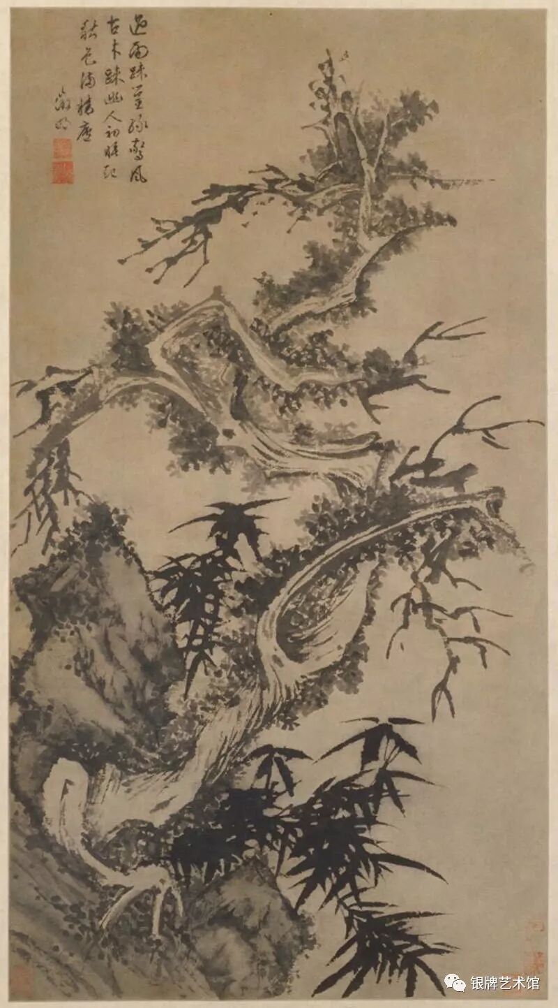 大家好!今天给大家介绍明朝文徵明的《枯木疏篁图》,收藏于沈阳博物馆。