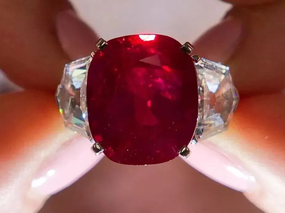 上图中的红宝石戒指,主石为6.41克拉缅甸无烧红宝石,颜色可达顶级鸽血红色,当然价格也很美丽,在2020年苏富比拍卖会上,以21955000港元成交。