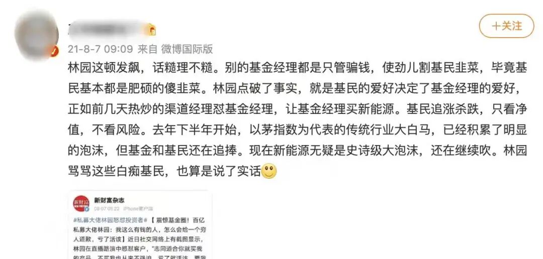 当基金不赚钱后,就如同遭遇塌房而脱粉的明星,基金经理也会因为业绩不佳而被踩下神坛。急需发泄的基民将曾经的爱豆当成了宣泄口。