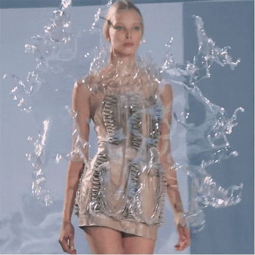 Iris van Herpen说:“有时候普通的面料会让人觉得死气沉沉,因此我试图将生活其气息带入其中,虽然很难,但这才是我的设计最终的目的。”