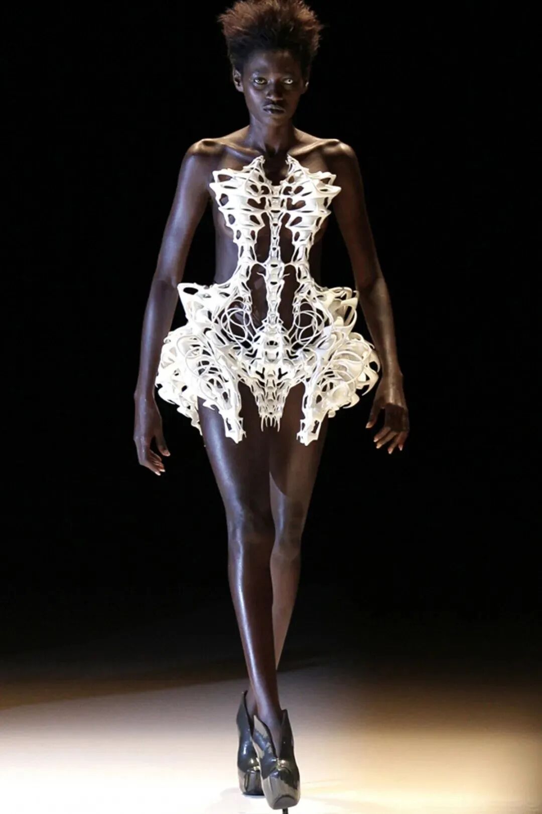 早在2009年,Iris van Herpen就开始尝试3D打印服装,如今她几乎所有的设计都始于电脑模型。