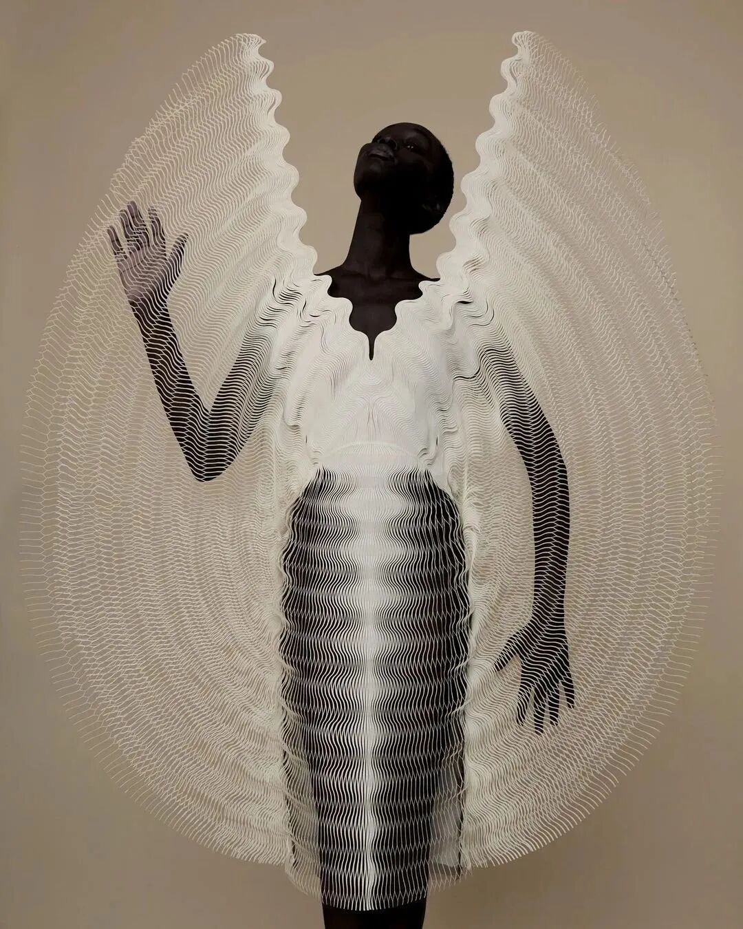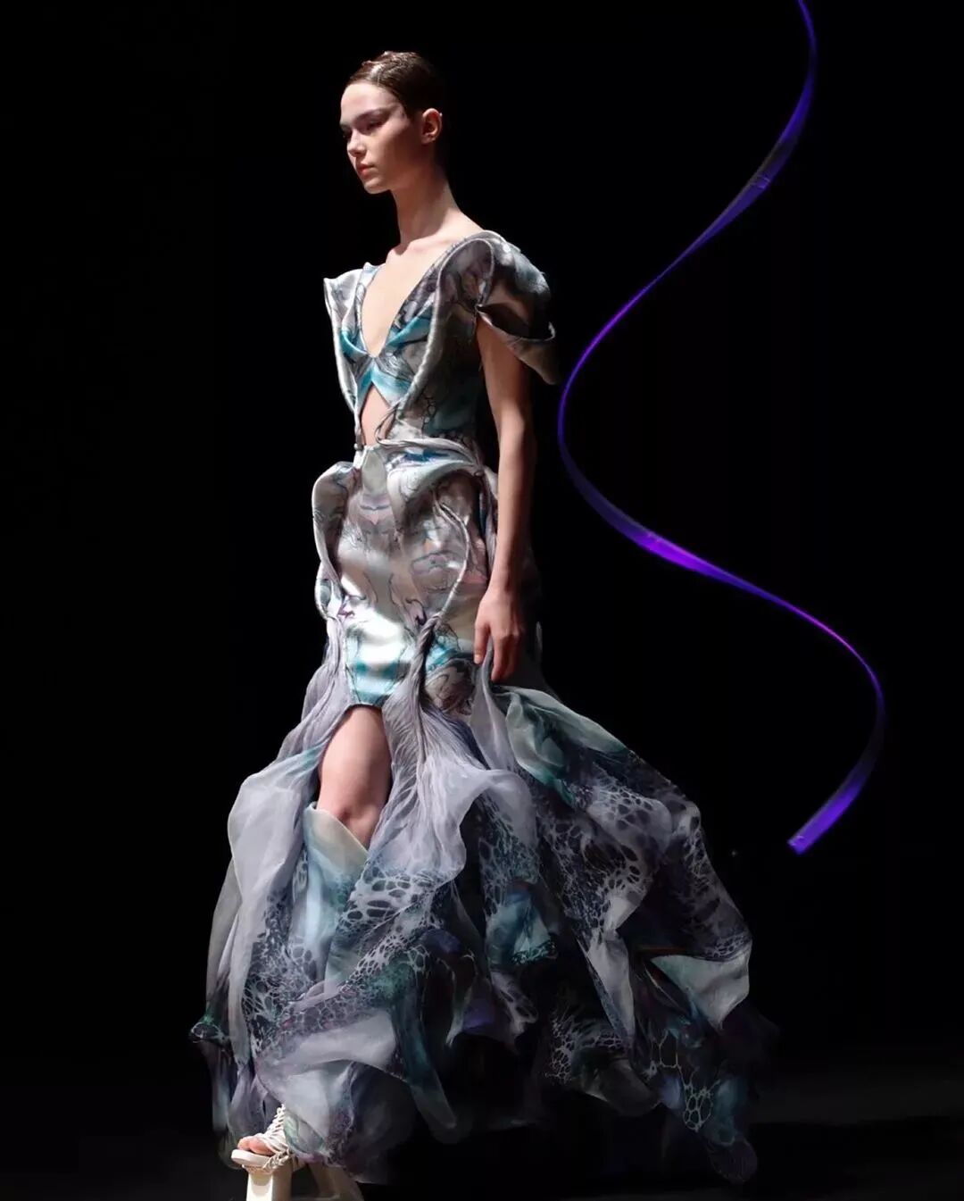 令人难以置信的是除了构造复杂,Iris Van Herpen还融合了许多手工制作的高级定制技术、3D打印面板和创新的可持续材料,
