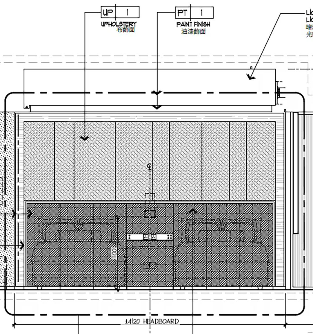 ▲a.在施工图中,没有对床头板的尺寸进行表达,只有索引。