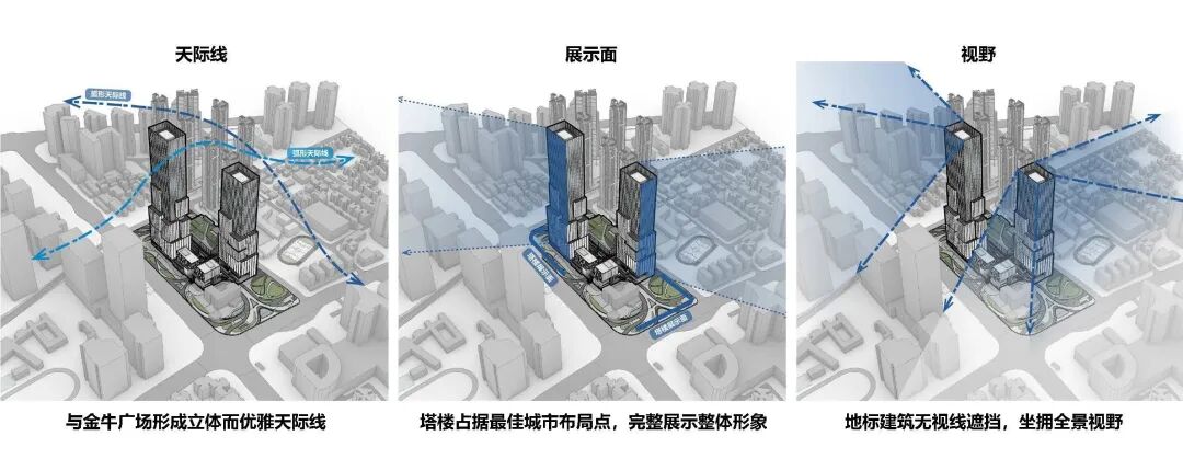 南苑旧改项目以原来基地之城中村为灵感,抽取当中空间尺度,城市肌理,功能组合,重新演绎具前瞻性之未来岭南建筑风格,为基地植入多元空间盒子,数码视觉艺术,自然生态科技,及以年轻家庭为核心的24小时商业配套,依托强大交通及景观优势,全天候无缝连接地铁公交,多首层汇聚人流,打造三维沉浸式购物山谷,结合文青,潮流主题性中庭空间,屋顶花园,下沉广场,连通东西公共绿地,形成小区慢行空间枢纽,市民休闲慢活场地.地标双塔对角布置,以最佳展示面面向南山大道及桃园路,及制造最大效益商业空间,塔楼以盒子组成,节节向上,高端挺拔,俯瞰南山美景。