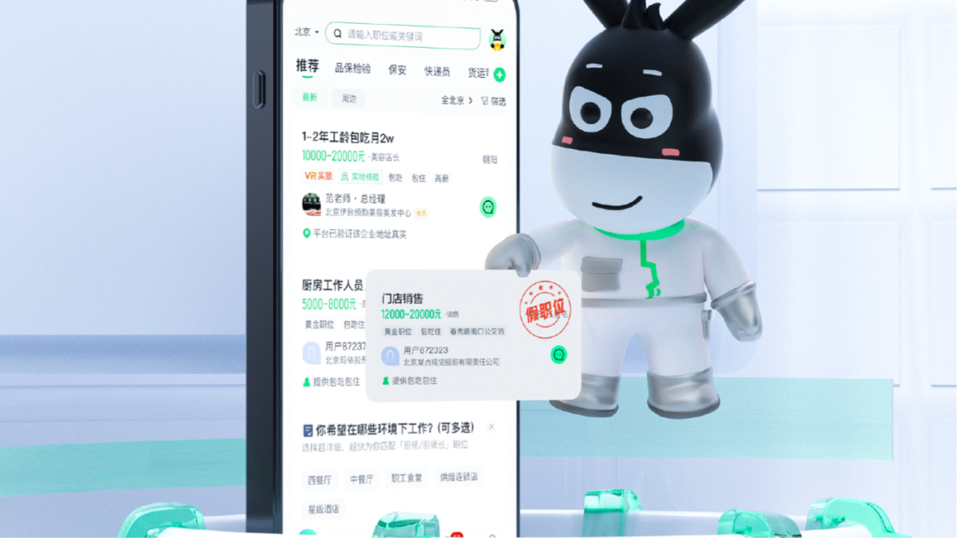 对赶集驴的IP重新赋予了它新的身份属性,以核验馆的身份出场,通过层层筛选,过滤掉信息不实的虚假信息,从而彰显赶集直招在对职位的筛选上非常严苛。从而加深用户对赶集直招的好感度。