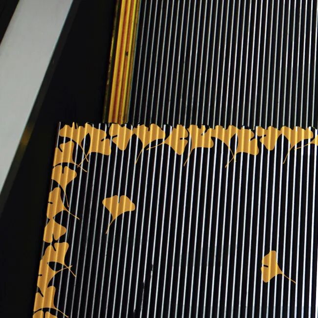 银杏落叶的自动扶梯